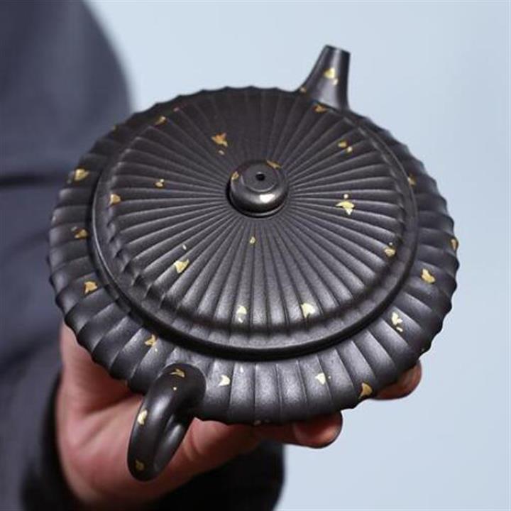 280cc原礦黑料描撒灑金筋紋虛扁茶壺POT8153