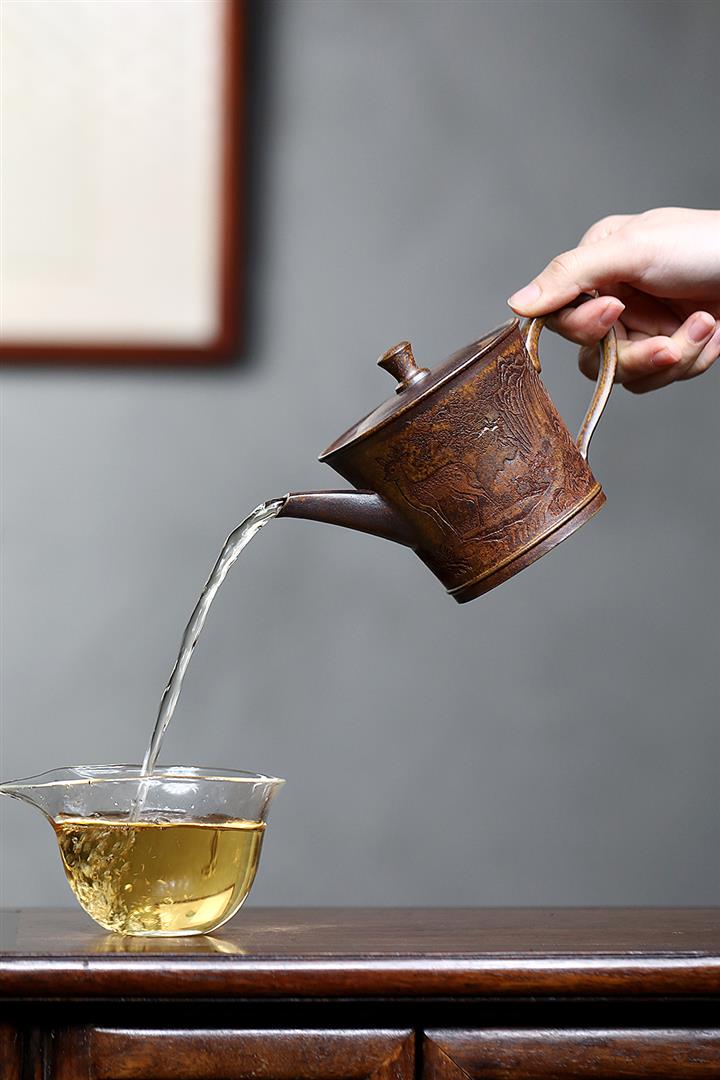 【作品介紹】此款壺形線條流暢,壺把,壺嘴,壺身壹氣呵成栩栩如生,是收藏把玩的好壺,泥料色澤古樸典雅,日久使用,漸露鋒芒,養成變化快,溫潤莊重,用其泡茶,使用的年代久,壺身就溫潤,泡出來的茶湯也就醇郁芳馨。