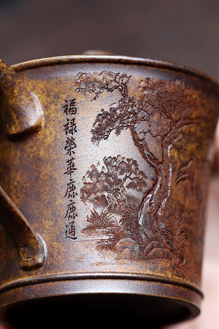 原礦黃金段泥六方劍流德鐘紫砂壺POT5947