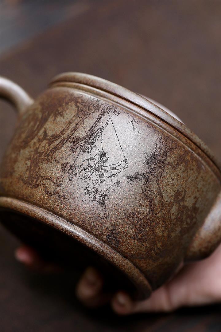 原礦陳腐本山綠泥厚德載物巨輪紫砂壺POT4867
