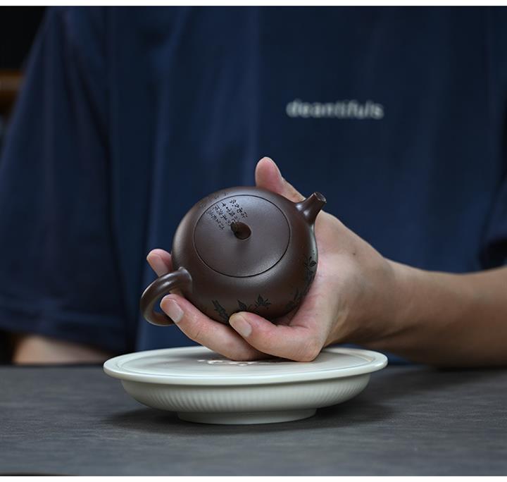 【作品介紹】此款壺形線條流暢,壺把,壺嘴,壺身壹氣呵成栩栩如生,是收藏把玩的好壺,泥料色澤古樸典雅,日久使用,漸露鋒芒,養成變化快,溫潤莊重,用其泡茶,使用的年代久,壺身就溫潤,泡出來的茶湯也就醇郁芳馨。