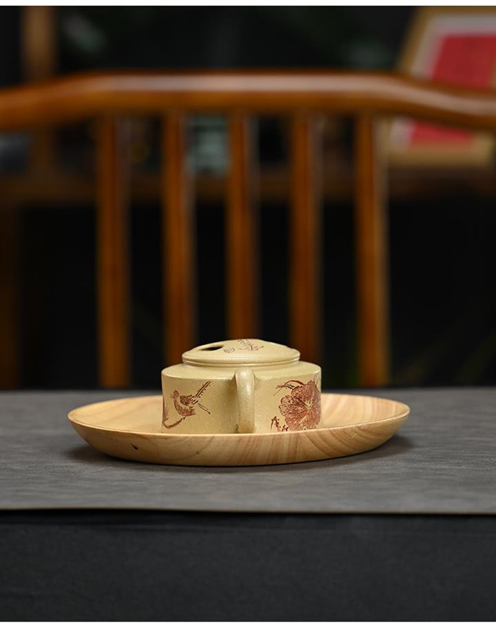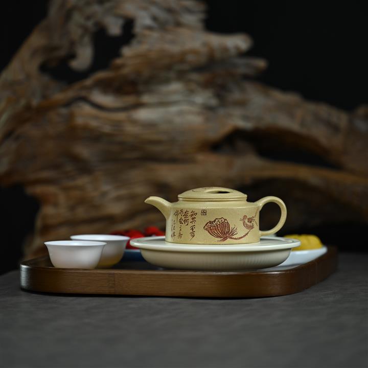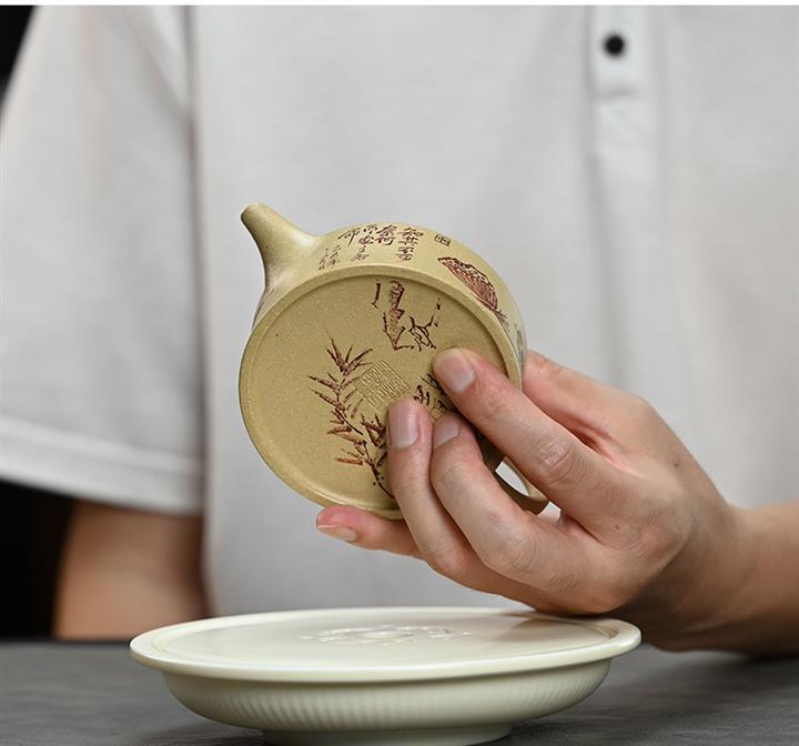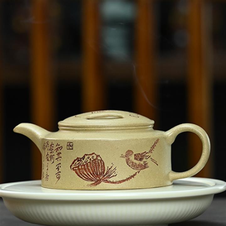 全手工刻繪撒金鳥趣石瓢原礦紫泥泡茶壺POT4015
