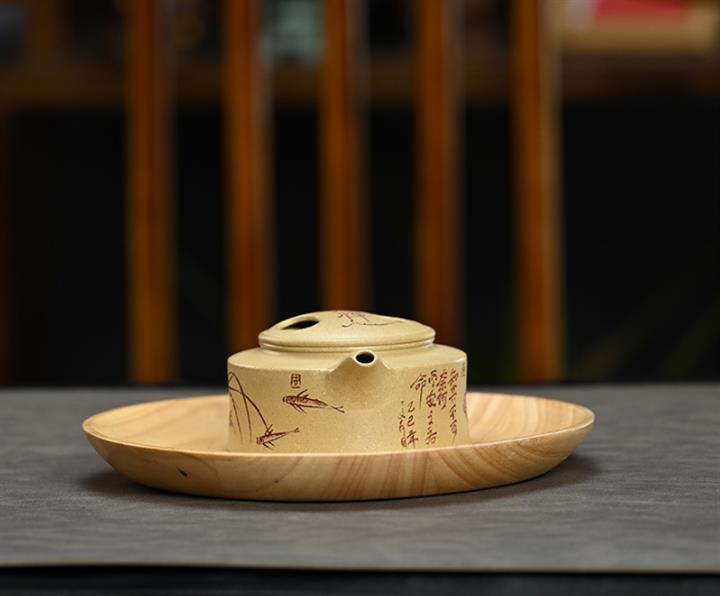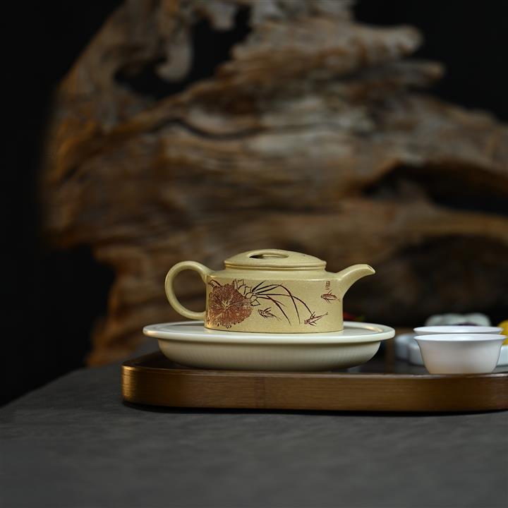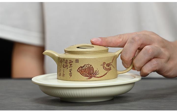 【泥料特點】砂土氣重,似淳實農民,日久使用,漸露鋒芒,養成變化,溫潤莊重。紫砂是壹種雙重氣孔結構的多孔性材質,氣孔微細,密度高。用紫砂壺沏茶,不失原味,且香不渙散,得茶之真香真味。紫砂使用越久,壺身色澤越發光亮照人,氣韻溫雅。紫砂壺長久使用器身會因撫摸擦拭,變得越發溫潤光澤。