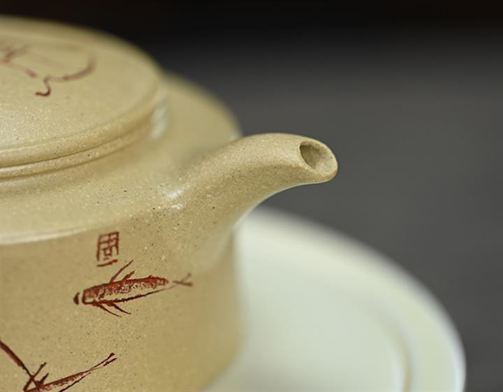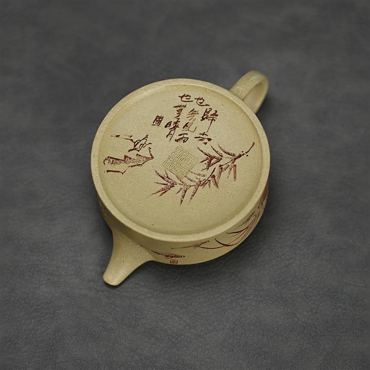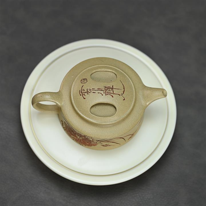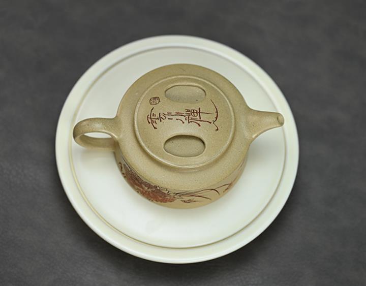180cc原礦綠泥牛蓋刻繪茶壺POT8351