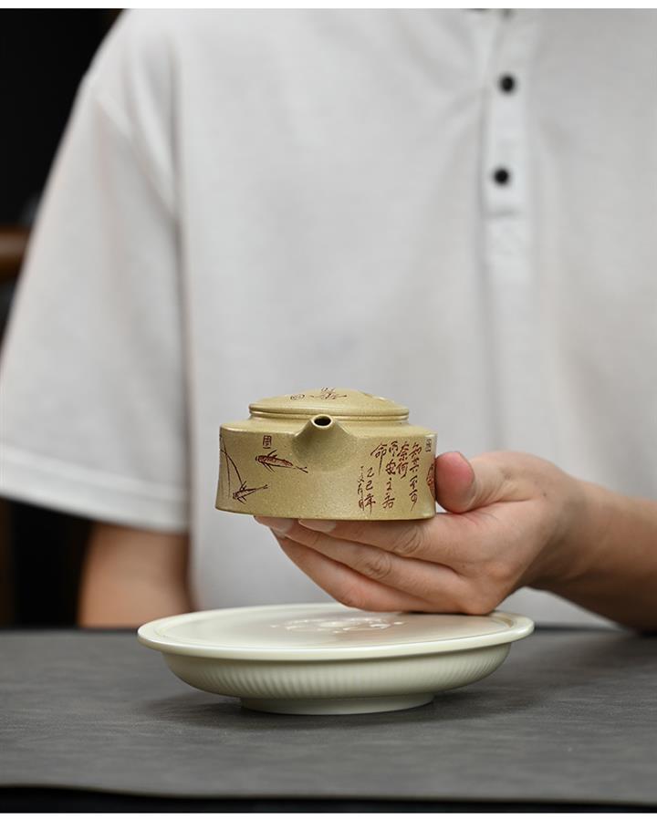 紫砂壺全純手工泥繪喜上眉梢泡茶壺原礦紫泥POT4012