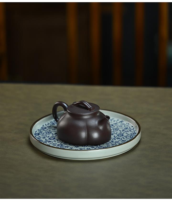 【泥料特點】砂土氣重,似淳實農民,日久使用,漸露鋒芒,養成變化,溫潤莊重。紫砂是壹種雙重氣孔結構的多孔性材質,氣孔微細,密度高。用紫砂壺沏茶,不失原味,且香不渙散,得茶之真香真味。紫砂使用越久,壺身色澤越發光亮照人,氣韻溫雅。紫砂壺長久使用器身會因撫摸擦拭,變得越發溫潤光澤。