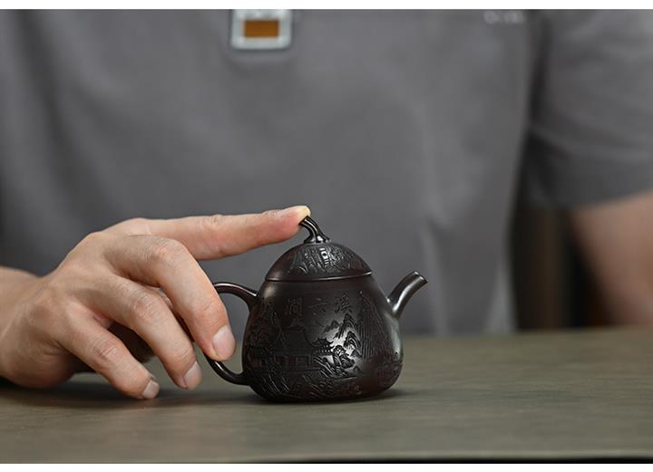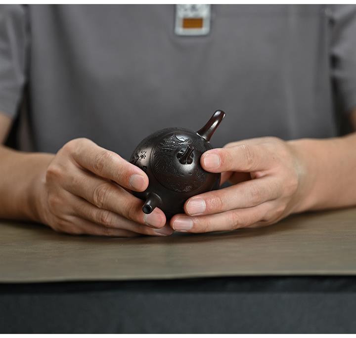 【作品介紹】此款壺形線條流暢,壺把,壺嘴,壺身壹氣呵成栩栩如生,是收藏把玩的好壺,泥料色澤古樸典雅,日久使用,漸露鋒芒,養成變化快,溫潤莊重,用其泡茶,使用的年代久,壺身就溫潤,泡出來的茶湯也就醇郁芳馨。