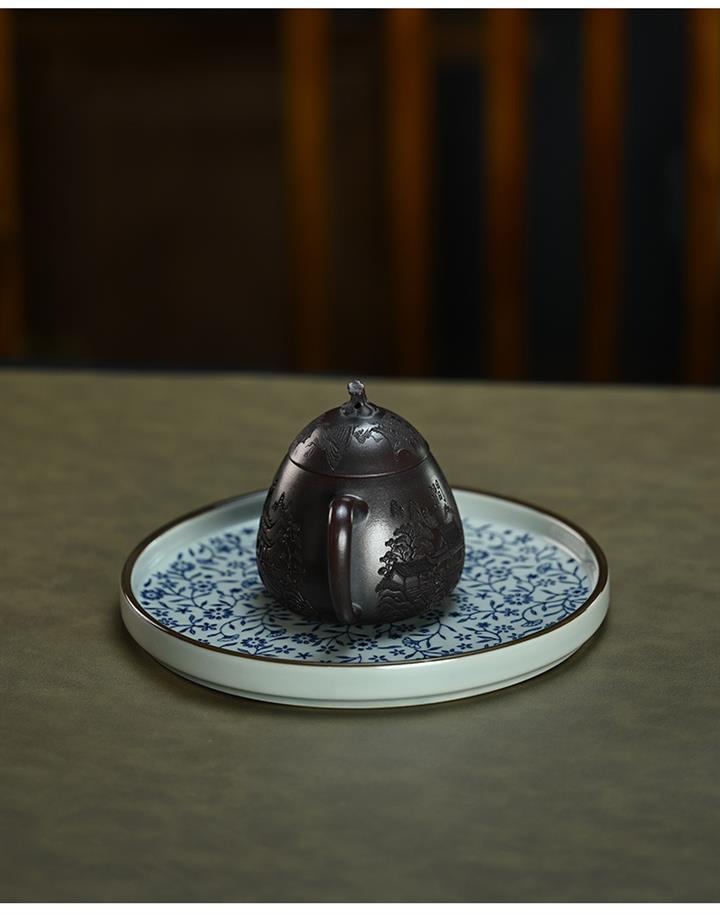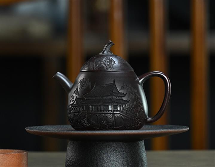 【泥料特點】砂土氣重,似淳實農民,日久使用,漸露鋒芒,養成變化,溫潤莊重。紫砂是壹種雙重氣孔結構的多孔性材質,氣孔微細,密度高。用紫砂壺沏茶,不失原味,且香不渙散,得茶之真香真味。紫砂使用越久,壺身色澤越發光亮照人,氣韻溫雅。紫砂壺長久使用器身會因撫摸擦拭,變得越發溫潤光澤。