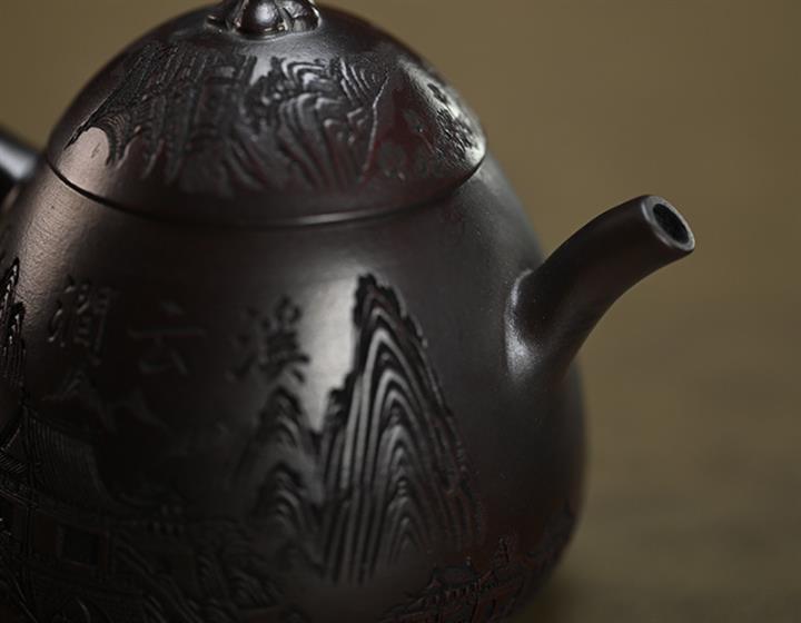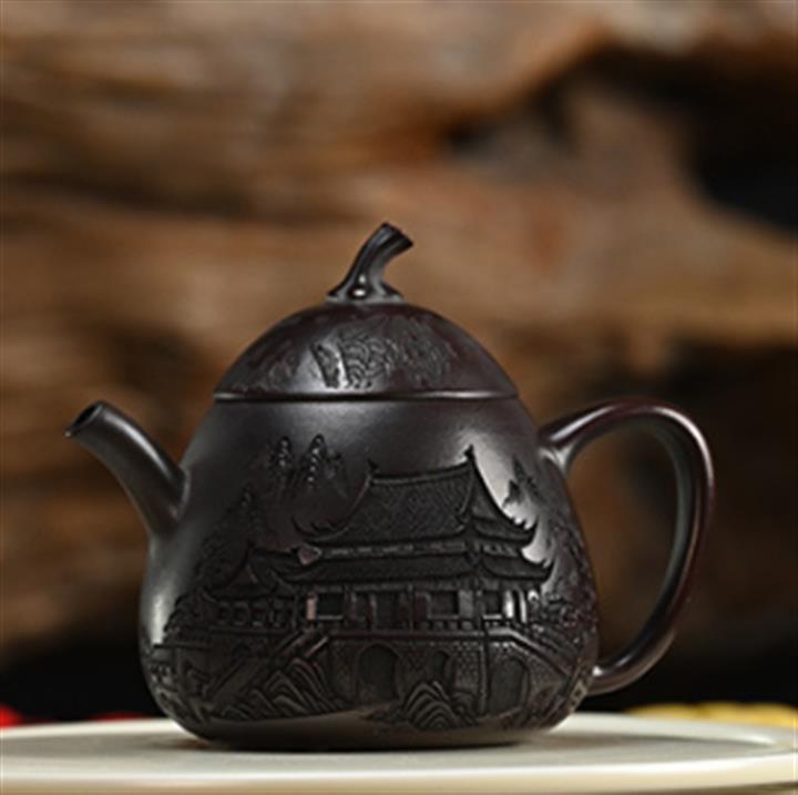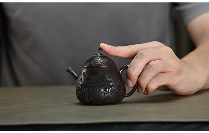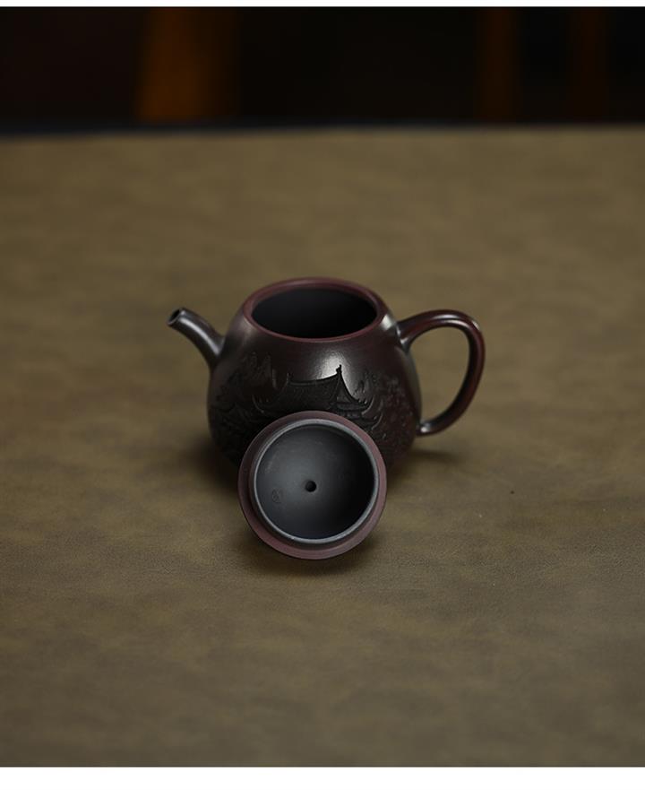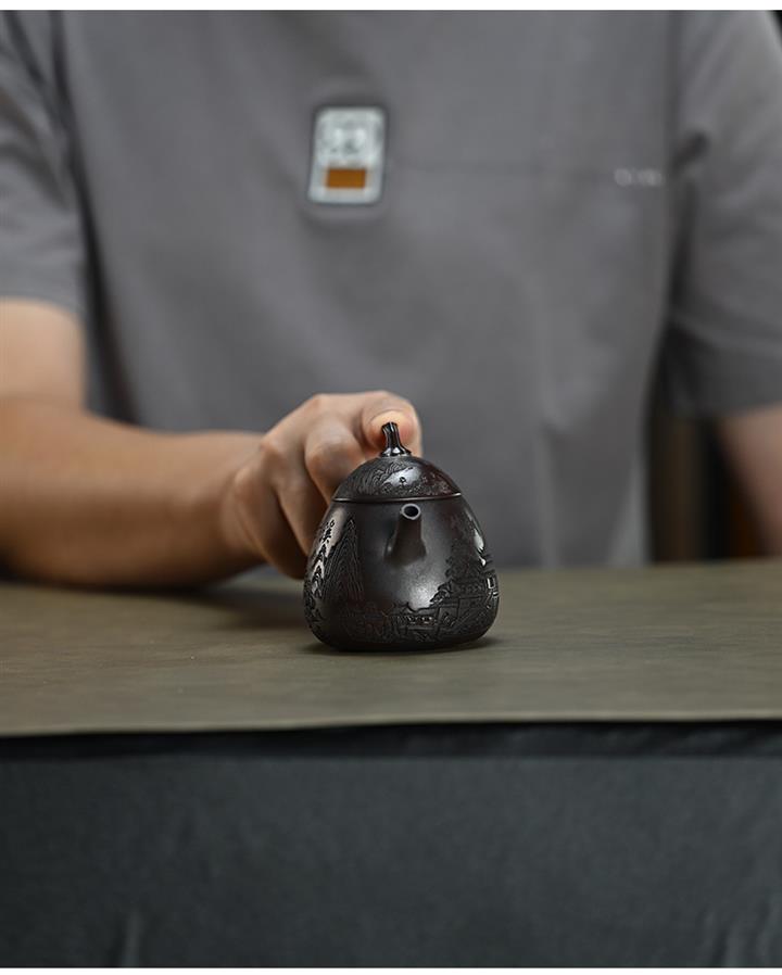 150cc原礦古紅泥茄瓜刻繪茶壺POT8360