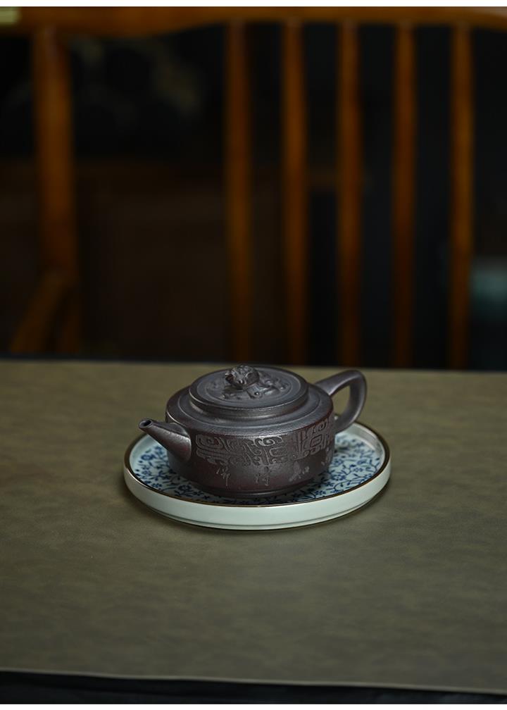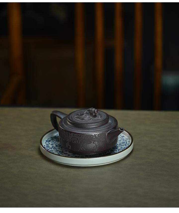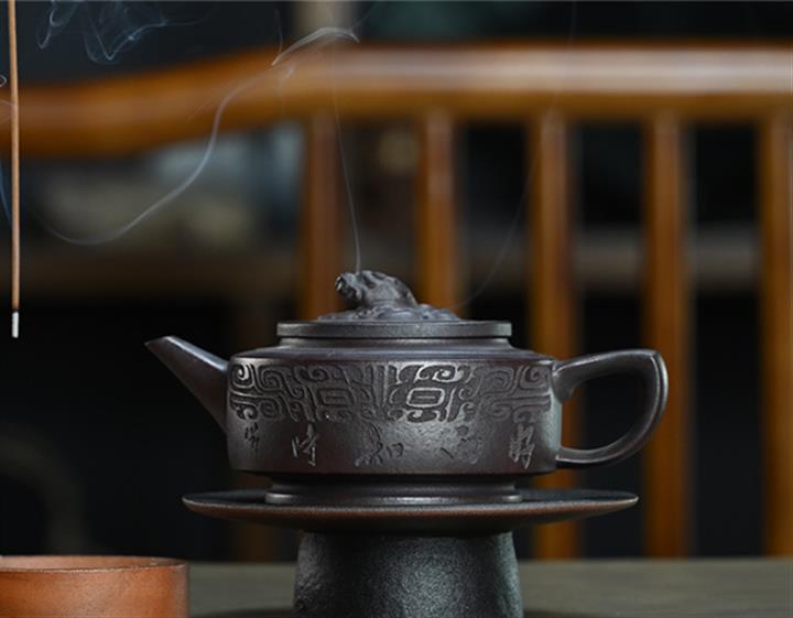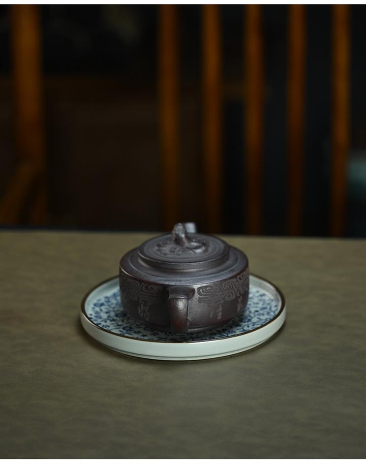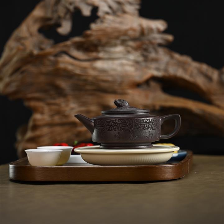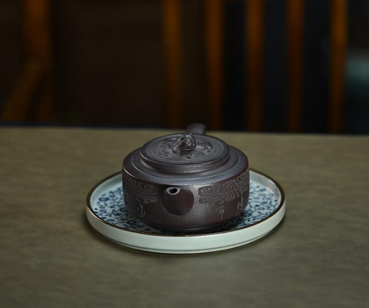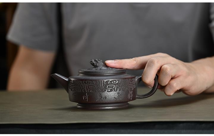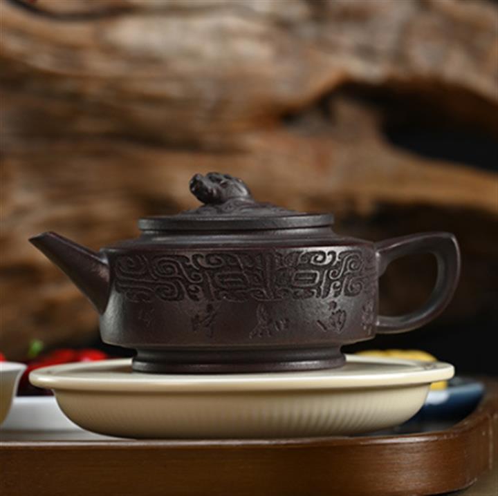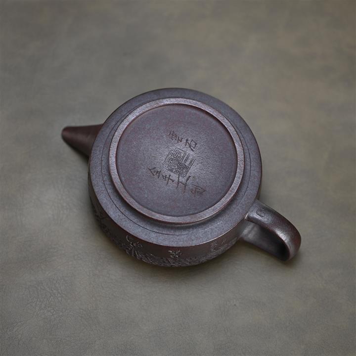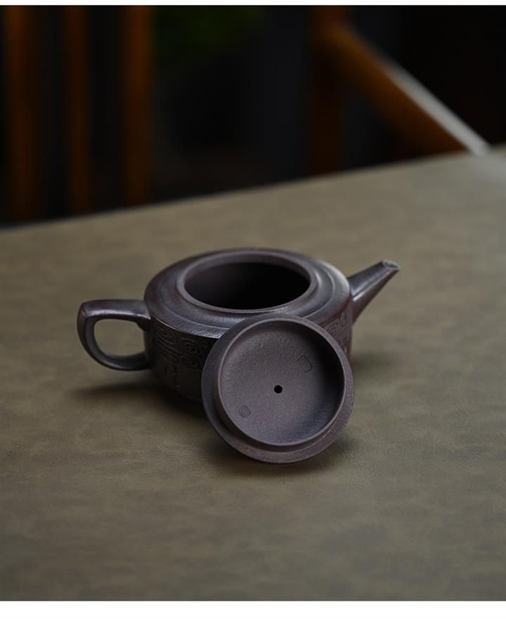 原礦紫砂壺紫泥手工刻繪百福柱礎POT4239