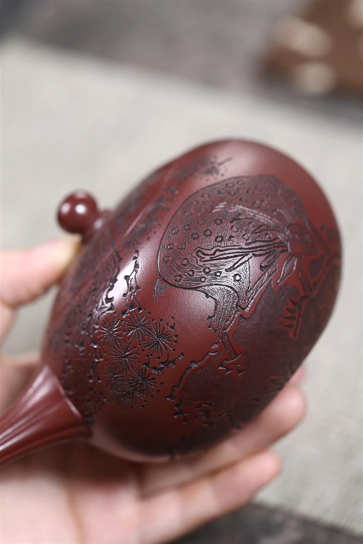 240cc原礦黑泥浮雕金蟾石瓢壺茶壺POT8234