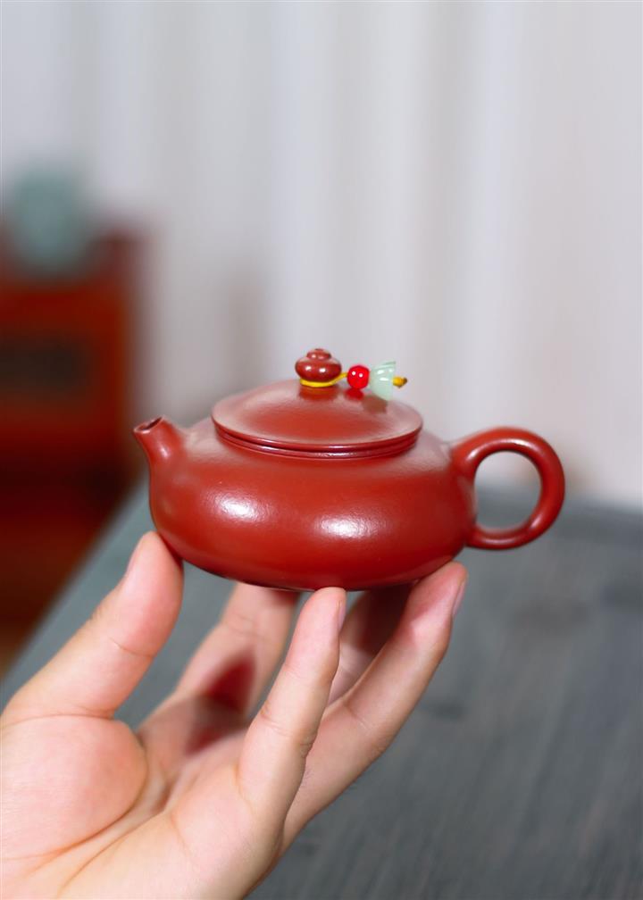 原礦龍血砂手工琢砂掇球紫砂壺150cc pot3653