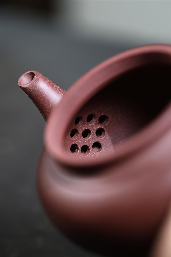 【作品介紹】此款壺形線條流暢,壺把,壺嘴,壺身壹氣呵成栩栩如生,是收藏把玩的好壺,泥料色澤古樸典雅,日久使用,漸露鋒芒,養成變化快,溫潤莊重,用其泡茶,使用的年代久,壺身就溫潤,泡出來的茶湯也就醇郁芳馨。