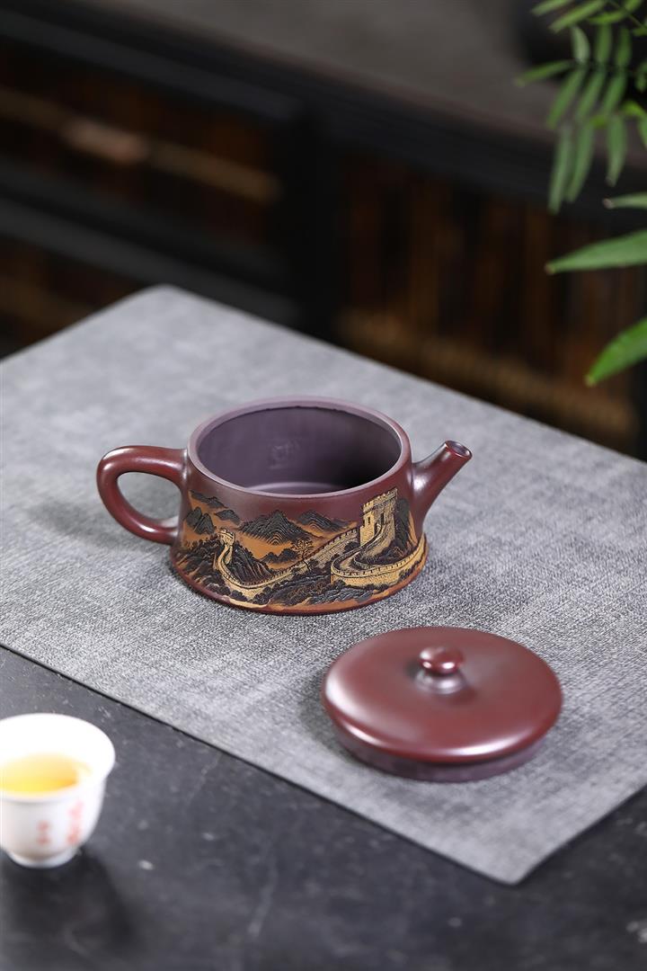 全手工刻繪紫砂壺名家紫砂茶壺原礦紫泥韻龍壺pot3694