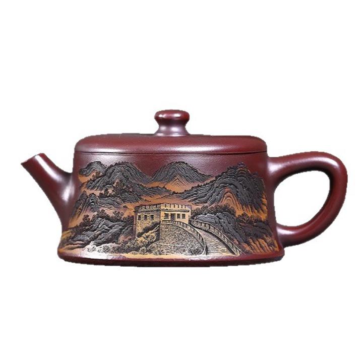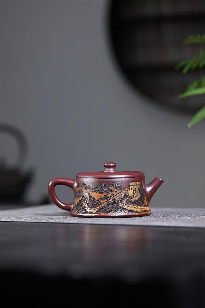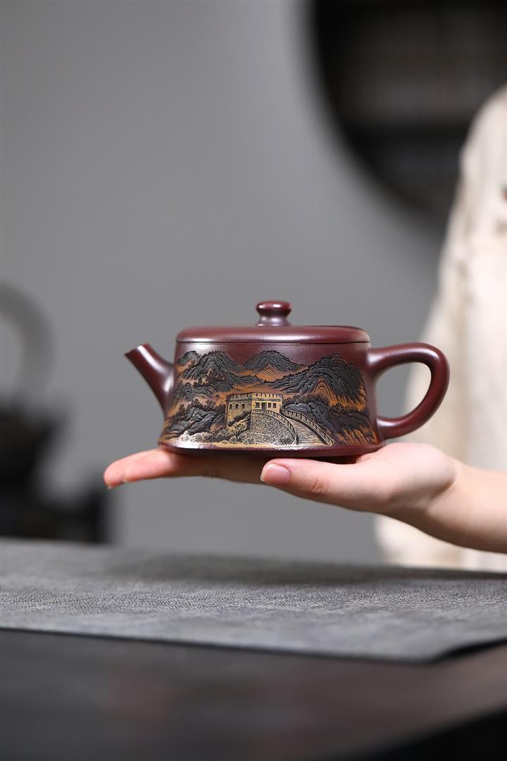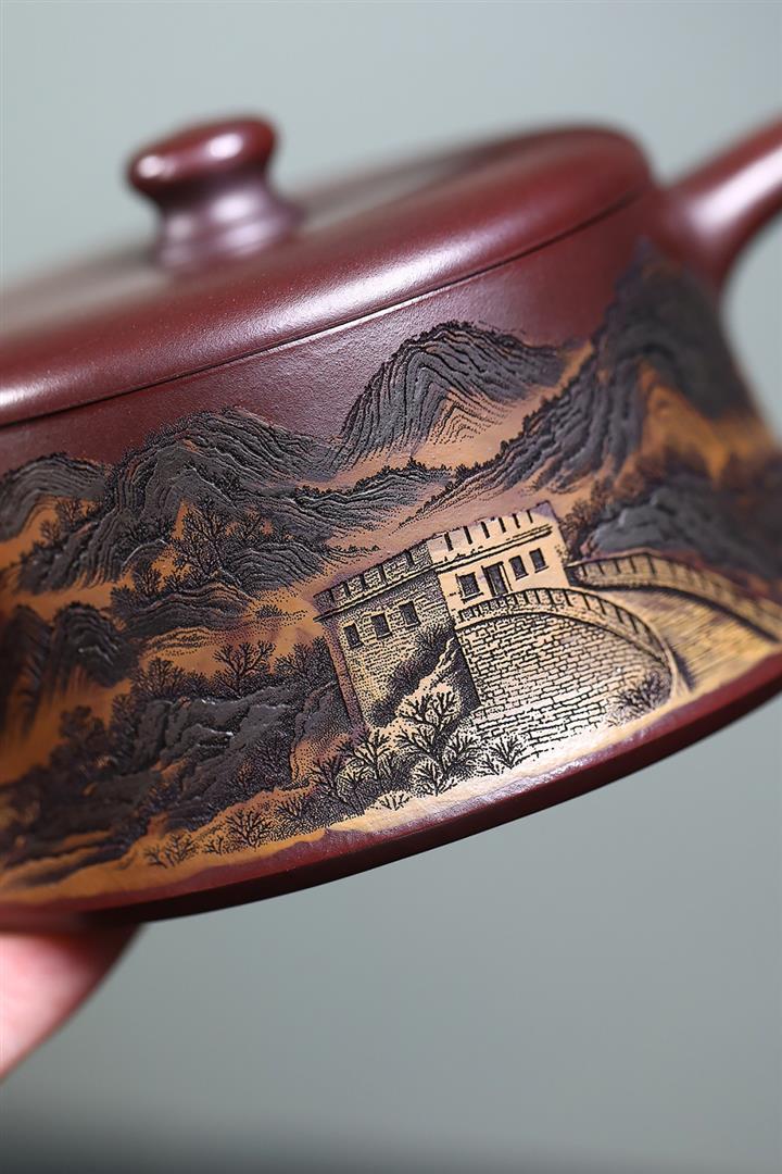 290cc原礦古銅泥彩刻江山攬勝茶壺POT8383