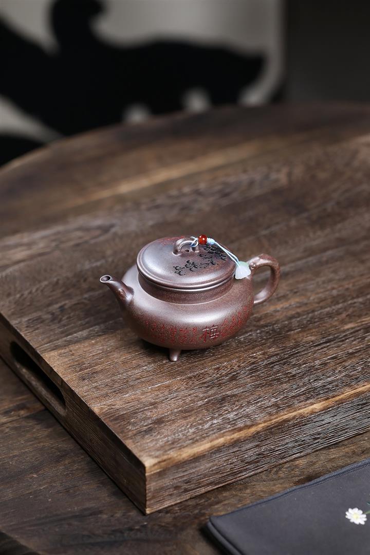 160cc原礦柴燒胭脂段泥疏影暗香茶壺POT8408