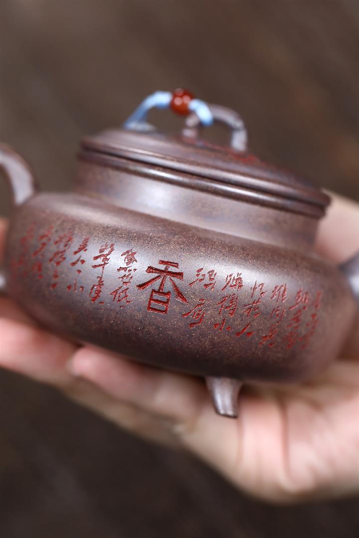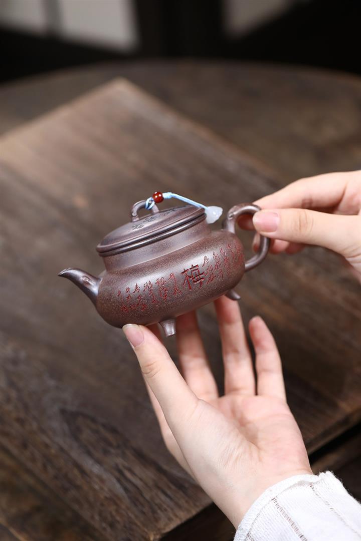 【作品介紹】此款壺形線條流暢,壺把,壺嘴,壺身壹氣呵成栩栩如生,是收藏把玩的好壺,泥料色澤古樸典雅,日久使用,漸露鋒芒,養成變化快,溫潤莊重,用其泡茶,使用的年代久,壺身就溫潤,泡出來的茶湯也就醇郁芳馨。