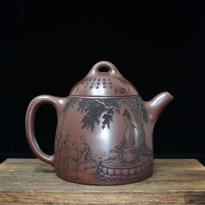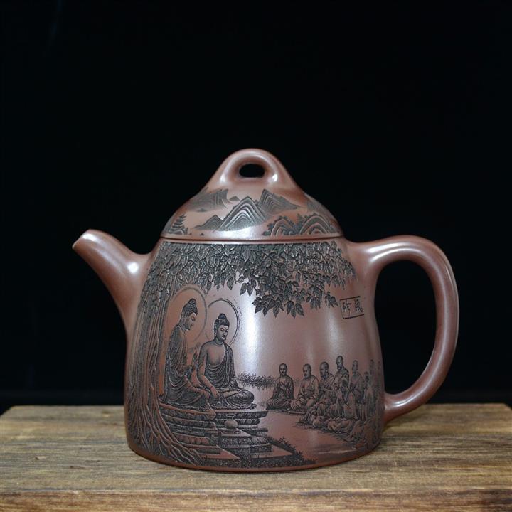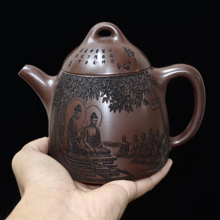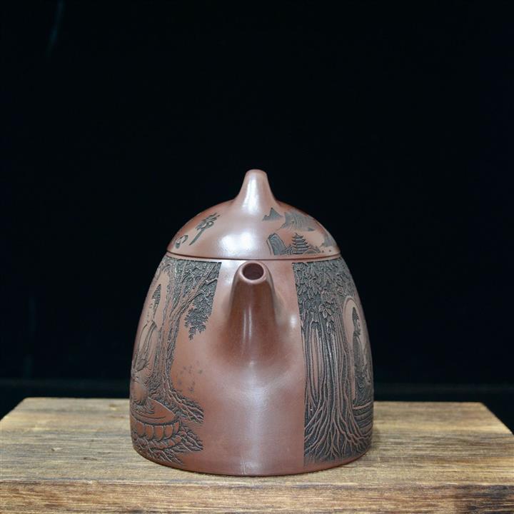 原礦黑泥刻繪德鐘紫砂壺POT4819
