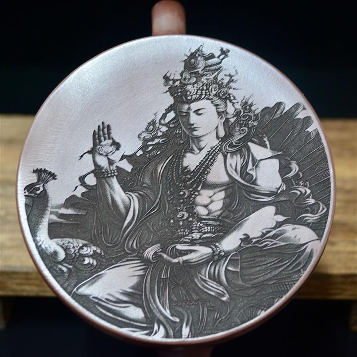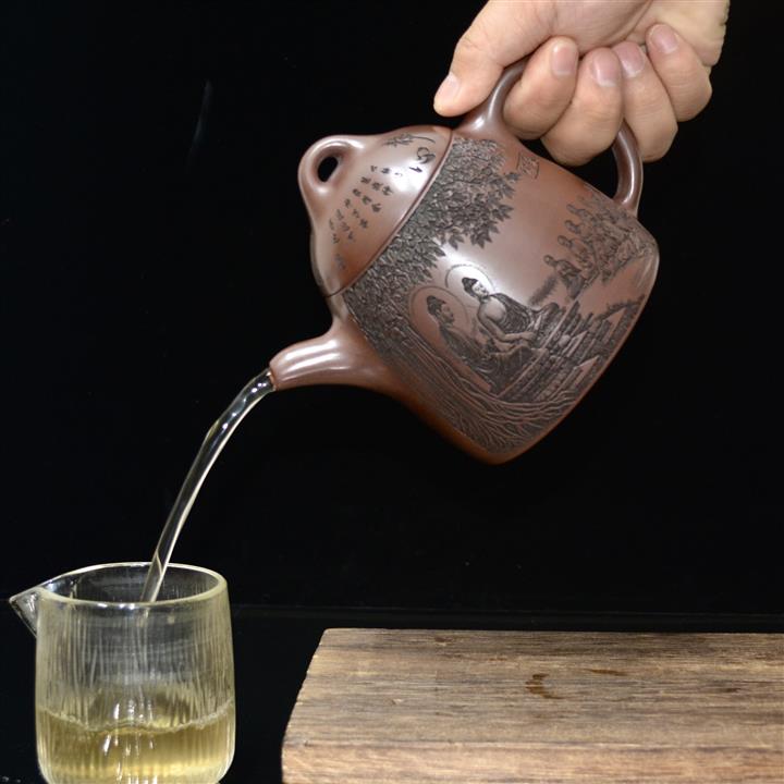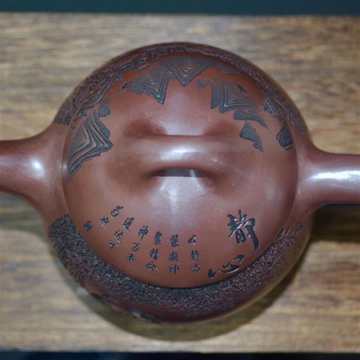 原礦紫朱泥刻繪扁承紫砂壺POT4817