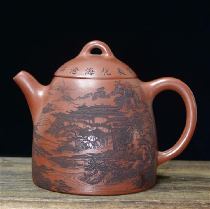 320cc原礦紅皮龍刻繪山水秦權泡茶壺POT8411