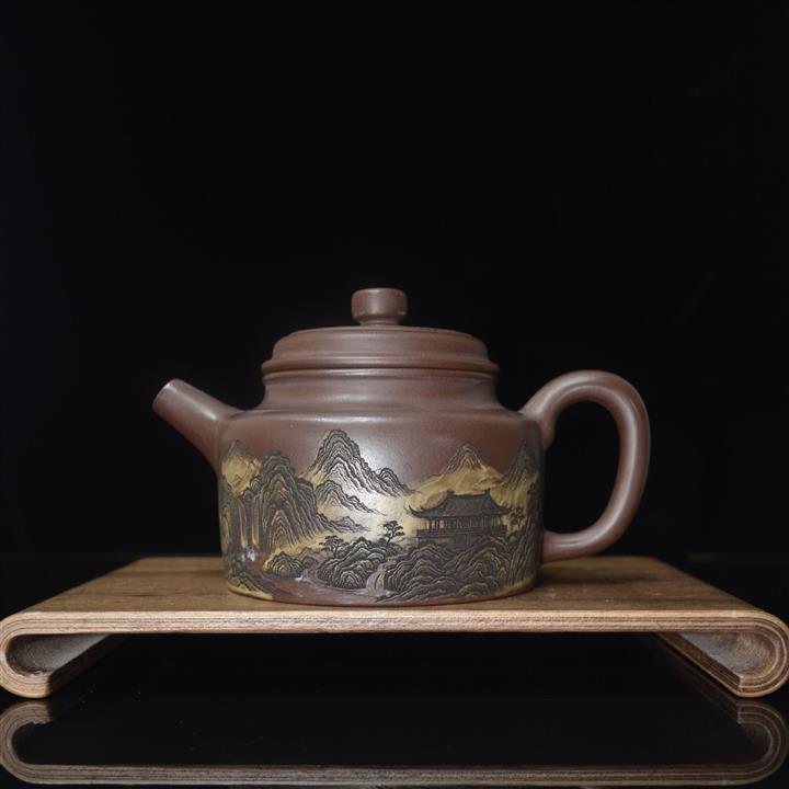 300cc原礦紫泥泥繪山水德鐘泡茶壺POT8413