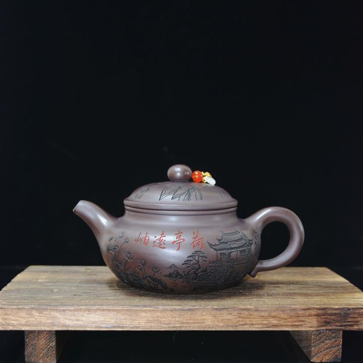 340cc原礦紫泥刻繪山水仿古泡茶壺POT8416