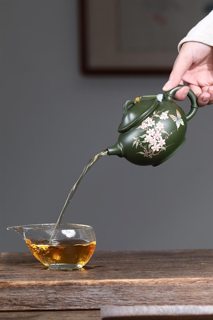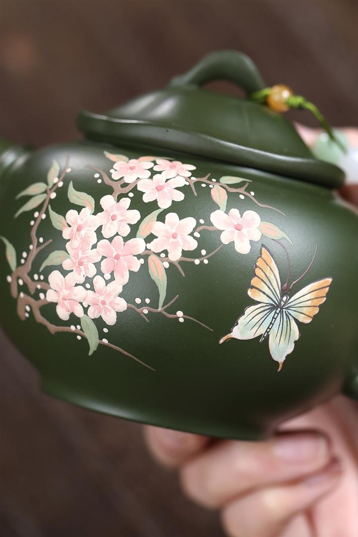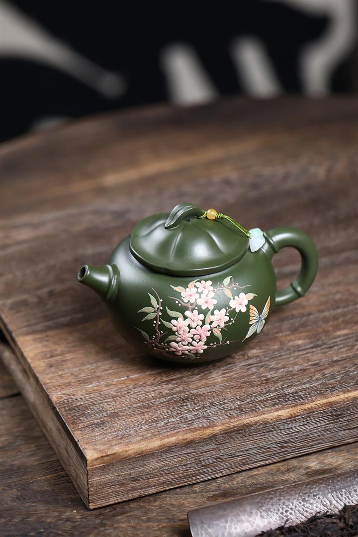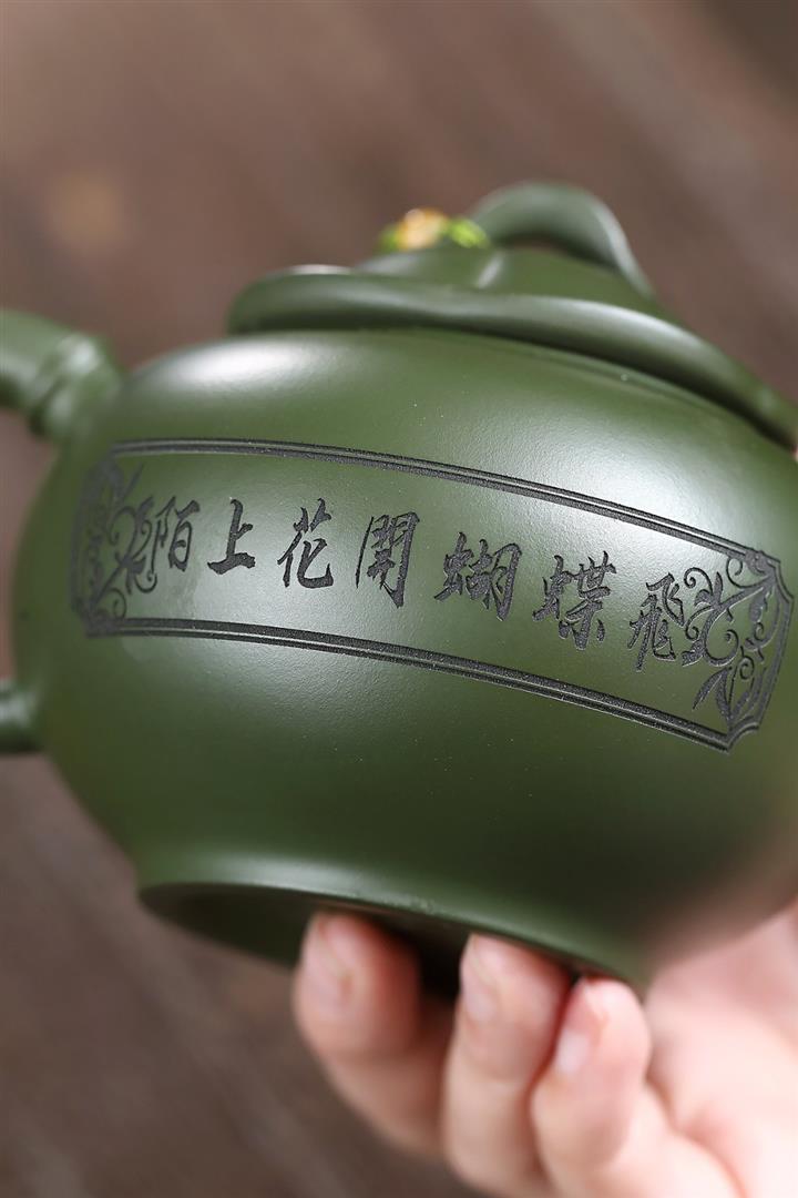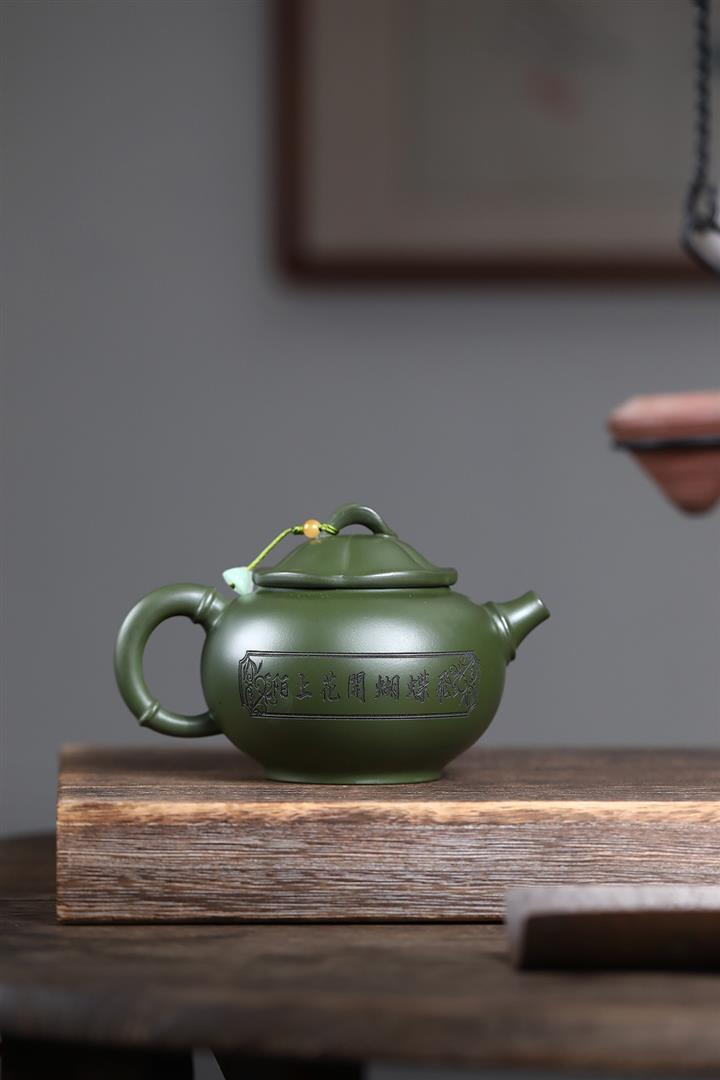 紫砂茶壺功夫茶具手工製原礦翡翠龍背青祥獅pot3775