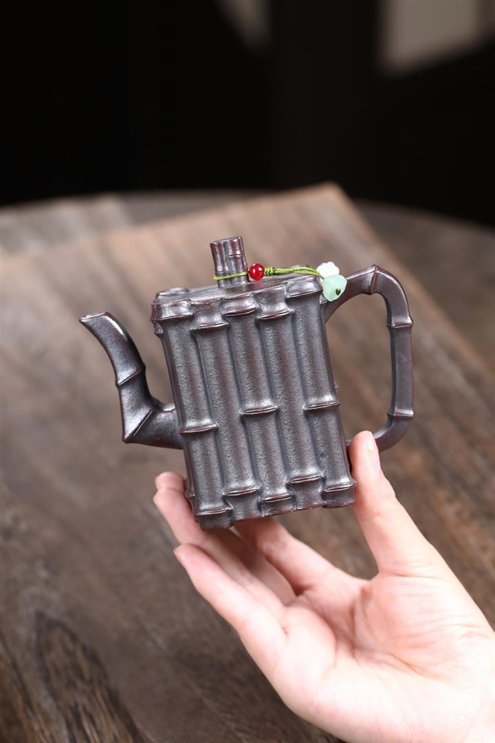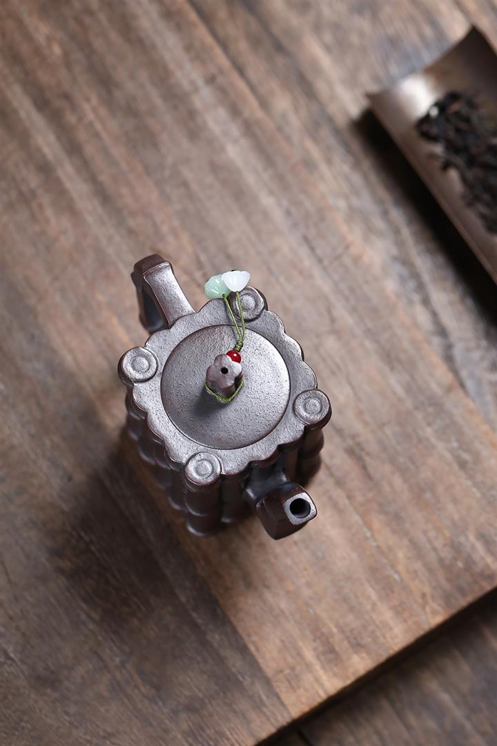 260cc原礦古銅泥四方捆竹茶壺POT8420