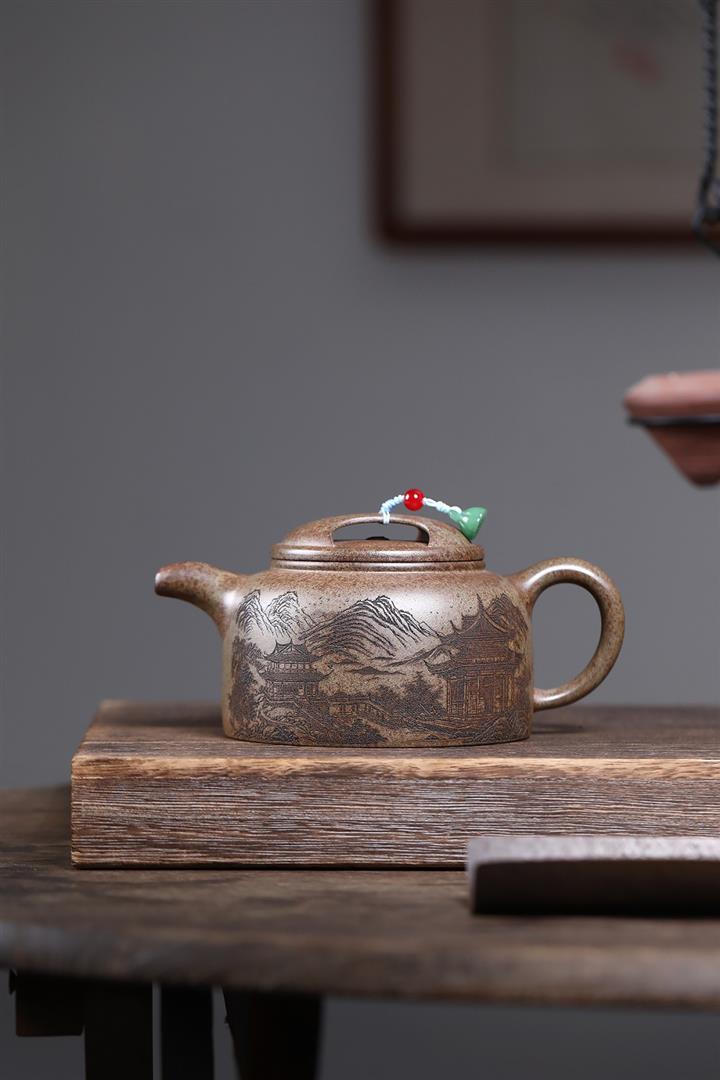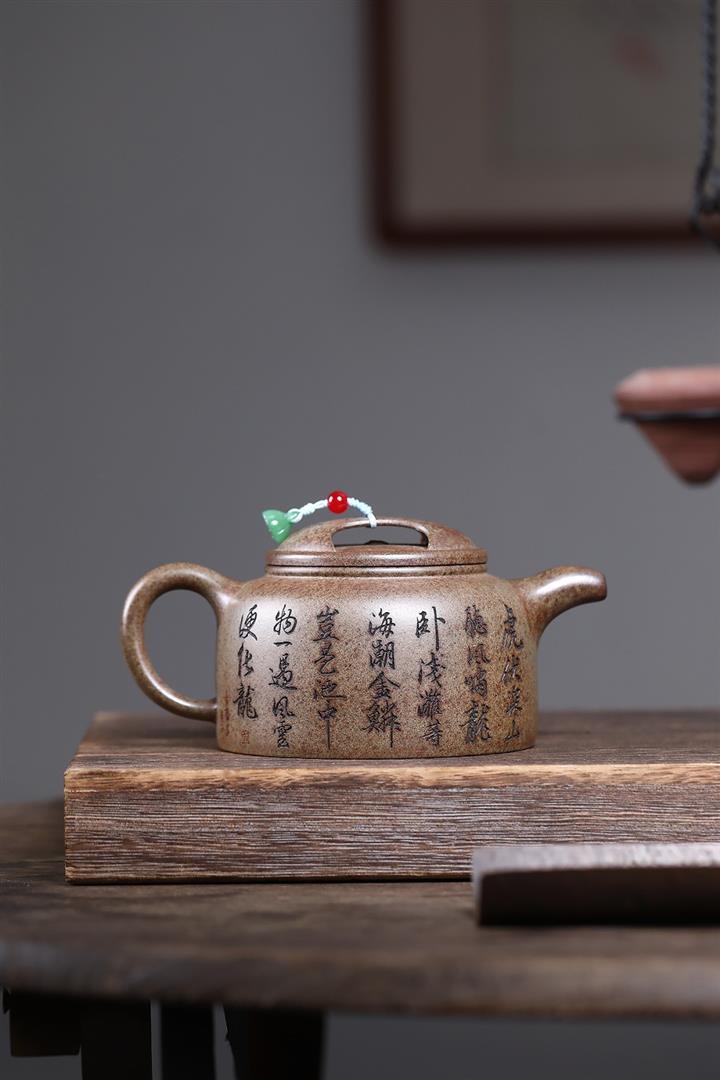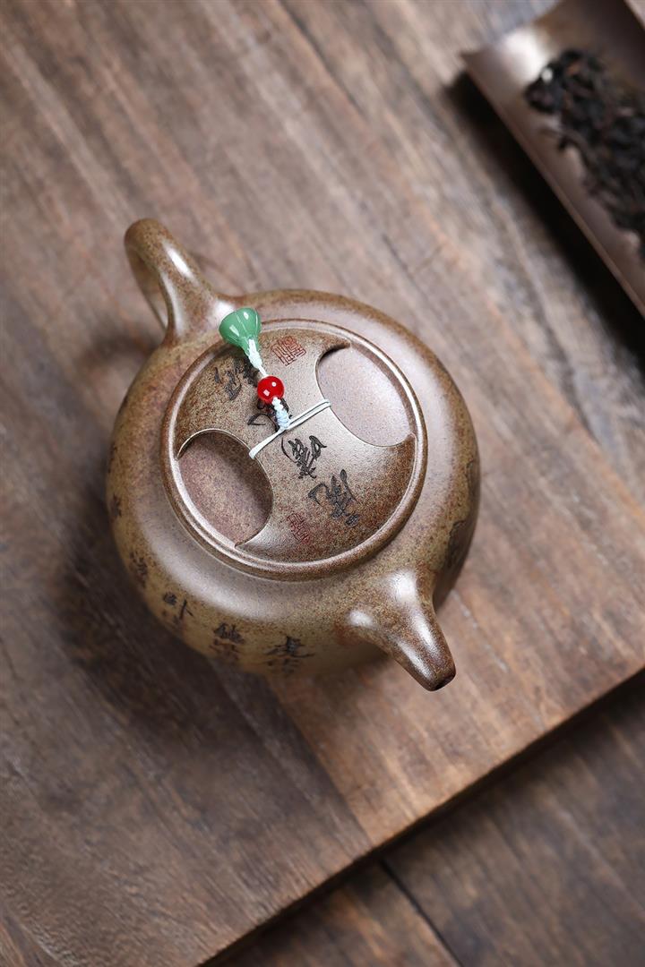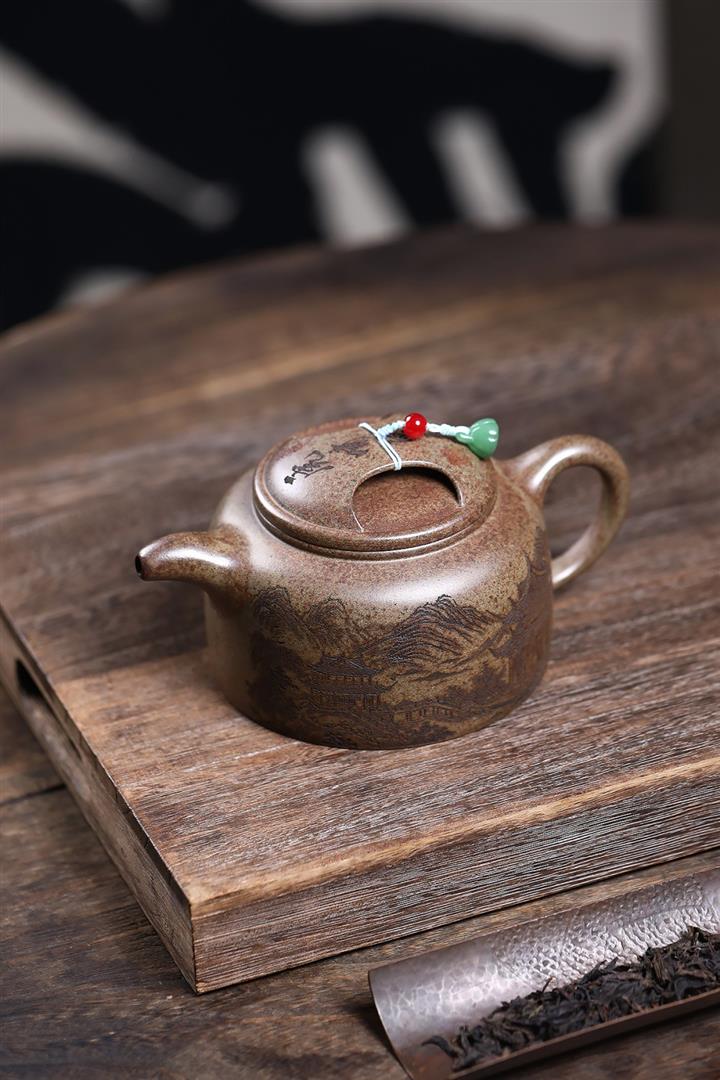 原礦黑泥刻繪鴻運當頭茶壺POT6954