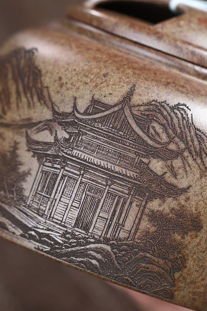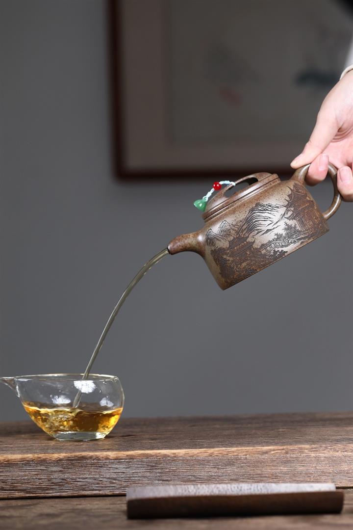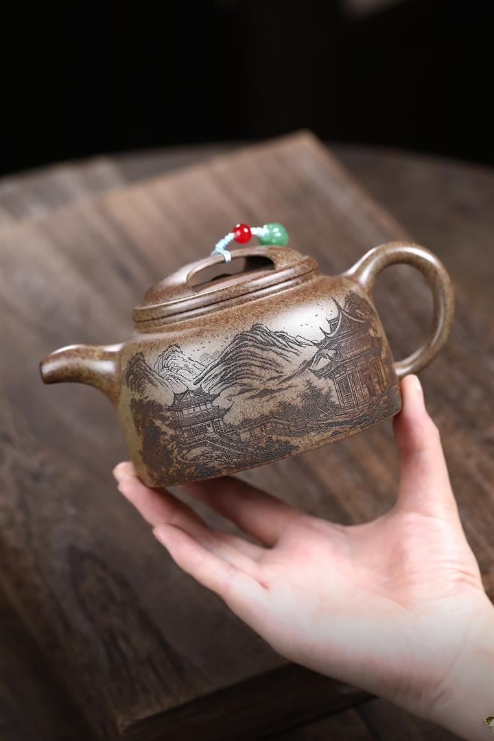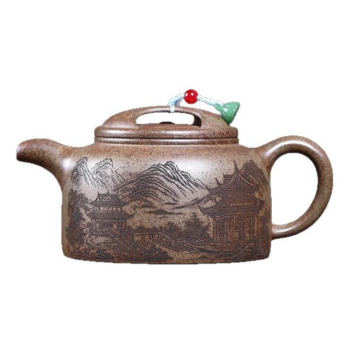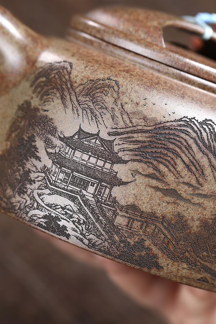 原礦黑泥刻繪鴻運當頭茶壺POT6954