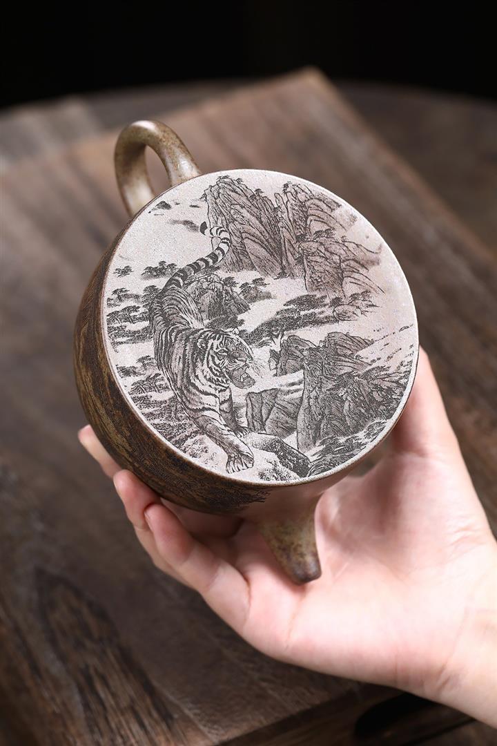 520cc原礦柴燒沈香泥虎嘯山河牛蓋蓮子壺POT8428