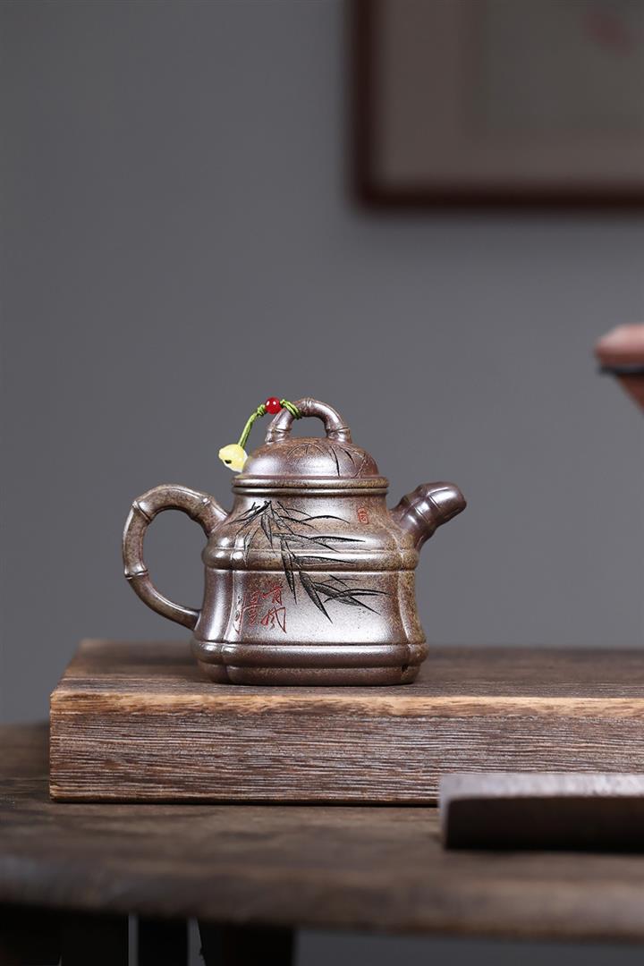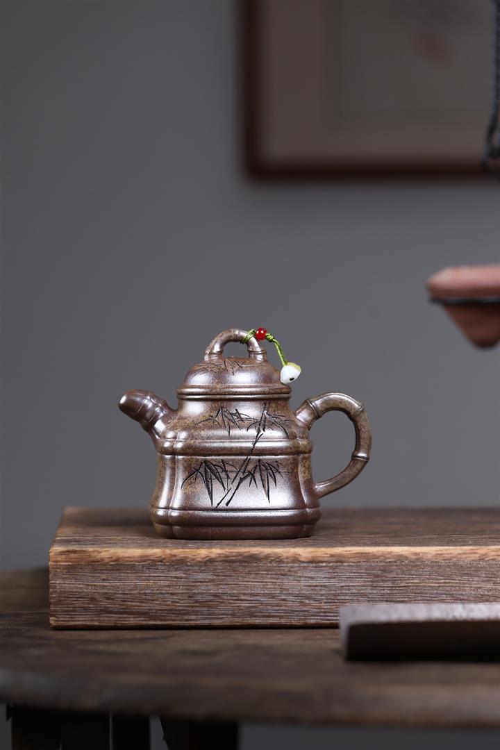 300cc原礦柴燒沈香泥沈煙翠影竹鼎壺POT8430
