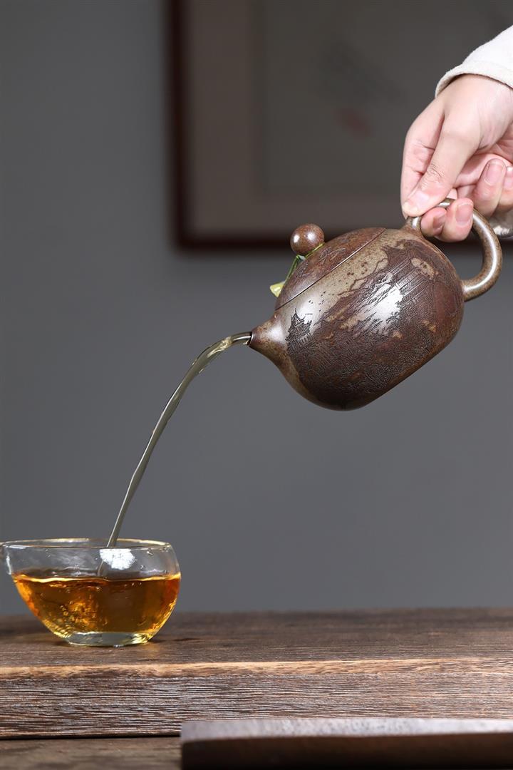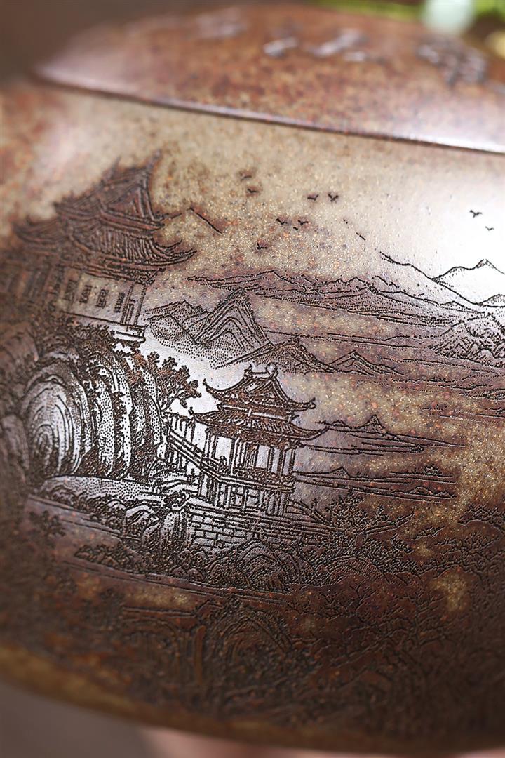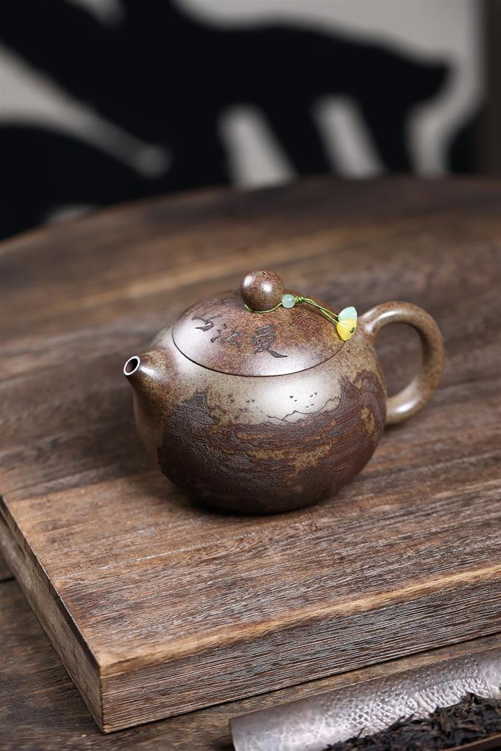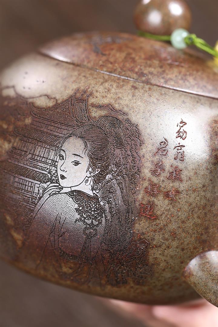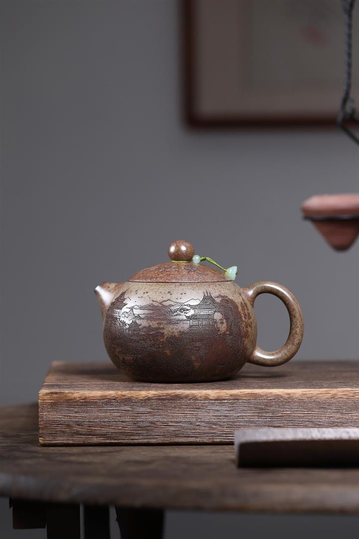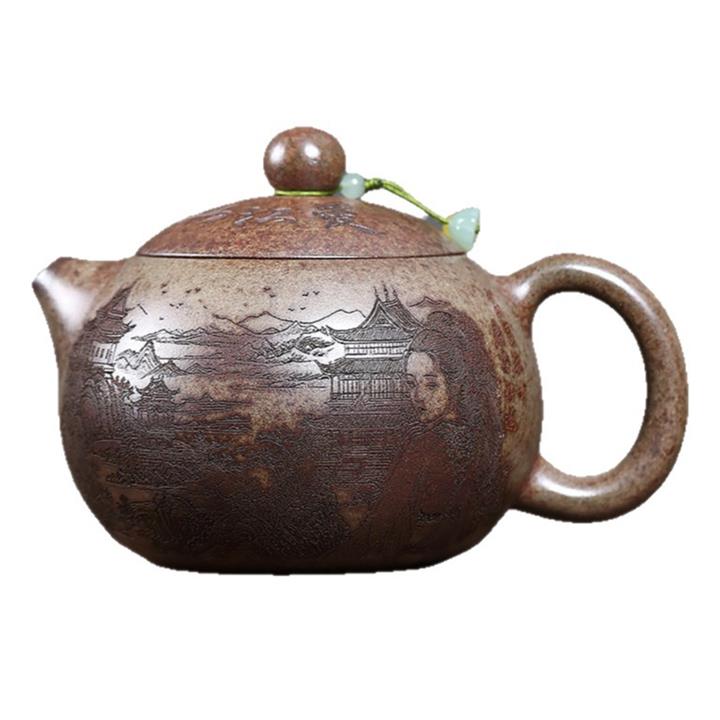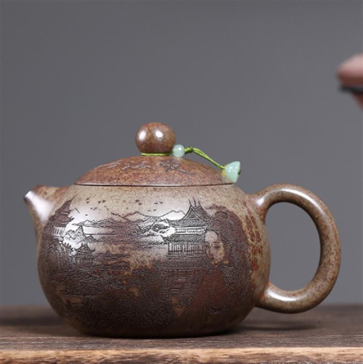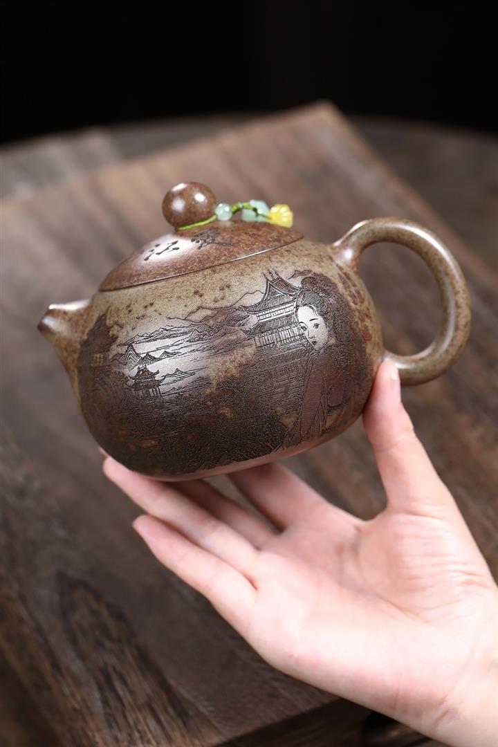原礦青段泥純手工刻繪周盤茶壺POT6924
