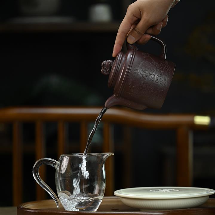 410cc原礦紫玉金砂純手工太平有象汲直茶壺POT8446