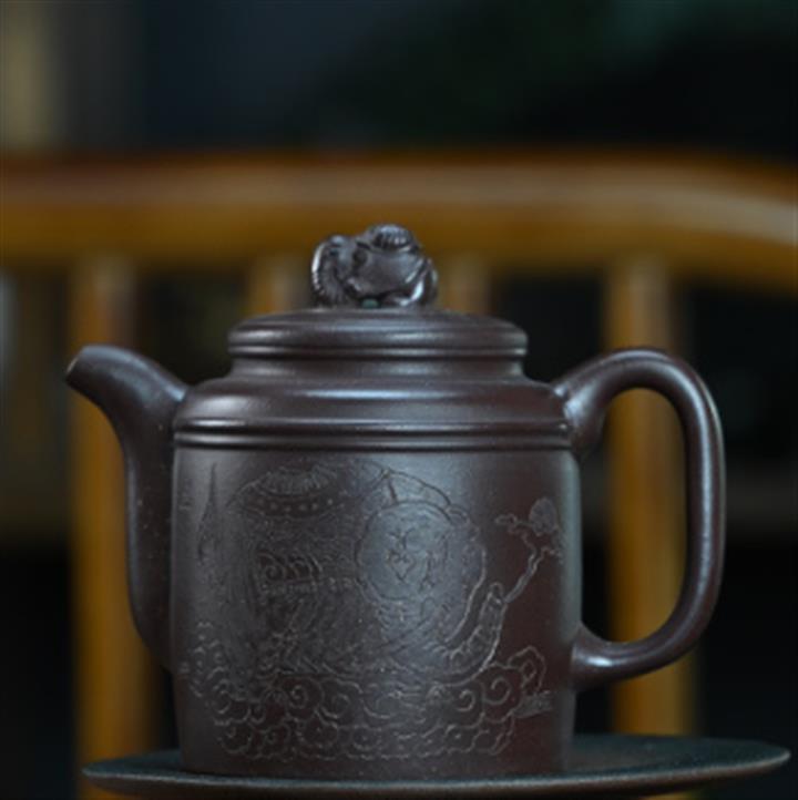 原礦深井紫泥手工麒麟元寶漢瓦壺POT6728