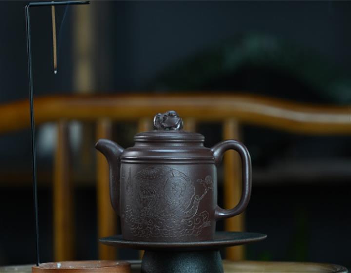 原礦紫玉金砂手工潛龍戲珠茶壺POT6730