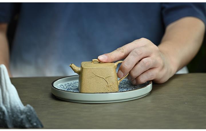 【泥料特點】砂土氣重,似淳實農民,日久使用,漸露鋒芒,養成變化,溫潤莊重。紫砂是壹種雙重氣孔結構的多孔性材質,氣孔微細,密度高。用紫砂壺沏茶,不失原味,且香不渙散,得茶之真香真味。紫砂使用越久,壺身色澤越發光亮照人,氣韻溫雅。紫砂壺長久使用器身會因撫摸擦拭,變得越發溫潤光澤。