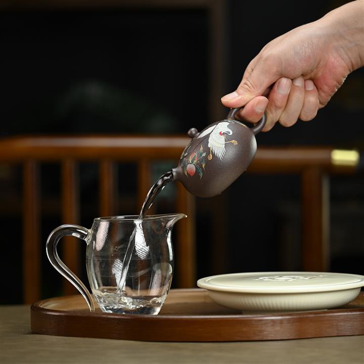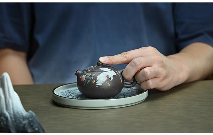 【泥料特點】砂土氣重,似淳實農民,日久使用,漸露鋒芒,養成變化,溫潤莊重。紫砂是壹種雙重氣孔結構的多孔性材質,氣孔微細,密度高。用紫砂壺沏茶,不失原味,且香不渙散,得茶之真香真味。紫砂使用越久,壺身色澤越發光亮照人,氣韻溫雅。紫砂壺長久使用器身會因撫摸擦拭,變得越發溫潤光澤。