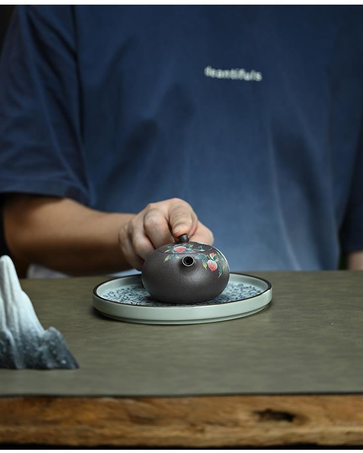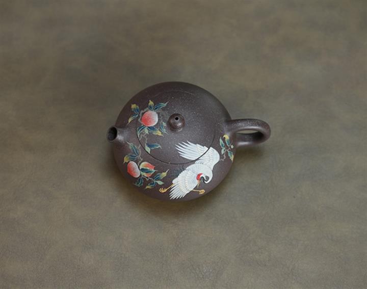 原礦粗砂朱泥琺瑯彩蝴蝶虛扁茶壺POT7218
