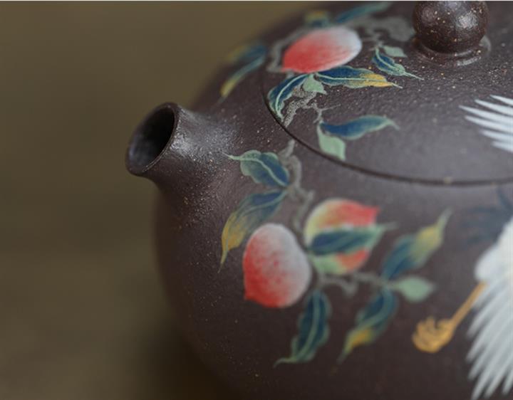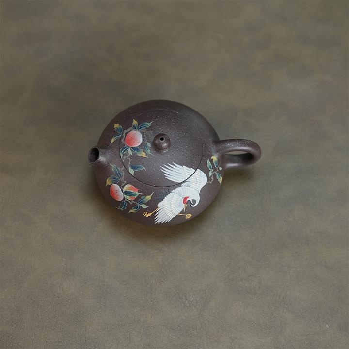 280cc原礦紫泥彩繪延壽河豚西施茶壺POT8451