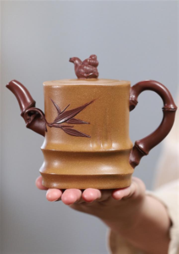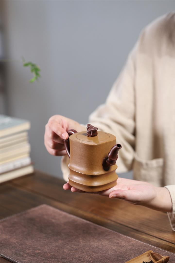 【作品介紹】此款壺形線條流暢,壺把,壺嘴,壺身壹氣呵成栩栩如生,是收藏把玩的好壺,泥料色澤古樸典雅,日久使用,漸露鋒芒,養成變化快,溫潤莊重,用其泡茶,使用的年代久,壺身就溫潤,泡出來的茶湯也就醇郁芳馨。