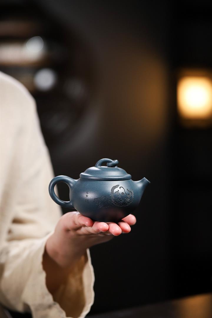 【作品介紹】此款壺形線條流暢,壺把,壺嘴,壺身壹氣呵成栩栩如生,是收藏把玩的好壺,泥料色澤古樸典雅,日久使用,漸露鋒芒,養成變化快,溫潤莊重,用其泡茶,使用的年代久,壺身就溫潤,泡出來的茶湯也就醇郁芳馨。