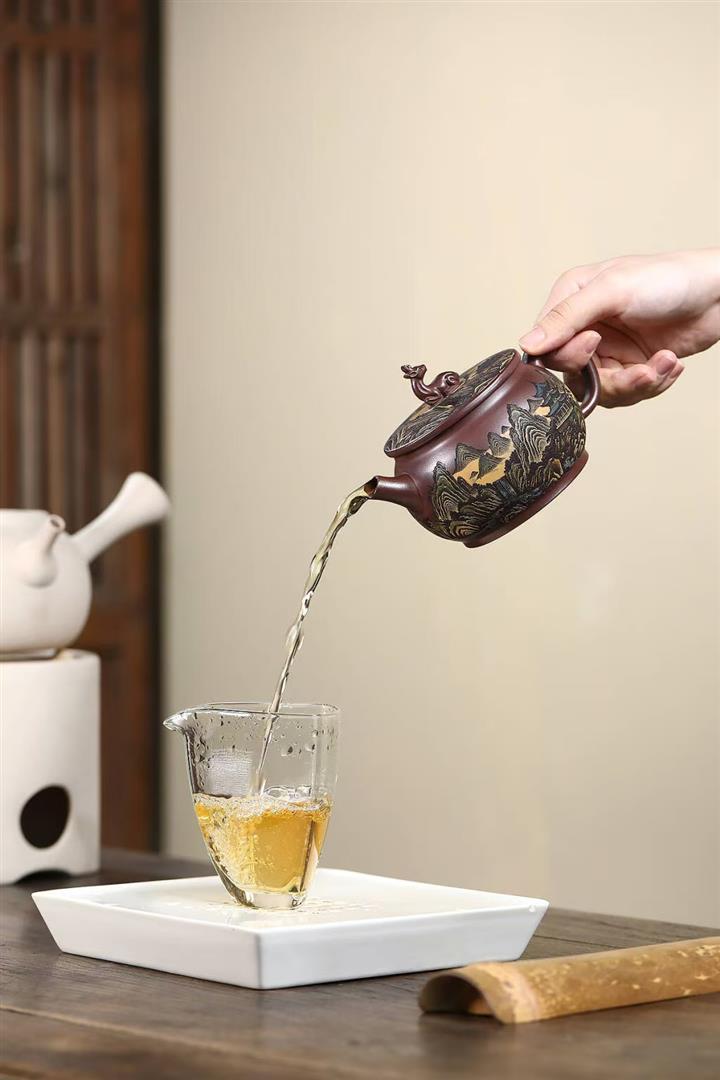 手工製原礦紫泥刻繪竹韻壺POT3929