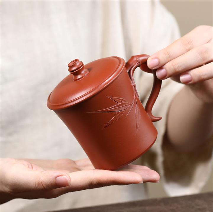 255cc原礦朱泥女士竹節蓋杯POT8461
