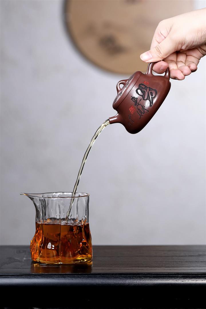 【泥料特點】砂土氣重,似淳實農民,日久使用,漸露鋒芒,養成變化,溫潤莊重。紫砂是壹種雙重氣孔結構的多孔性材質,氣孔微細,密度高。用紫砂壺沏茶,不失原味,且香不渙散,得茶之真香真味。紫砂使用越久,壺身色澤越發光亮照人,氣韻溫雅。紫砂壺長久使用器身會因撫摸擦拭,變得越發溫潤光澤。