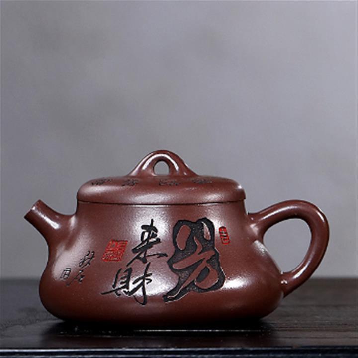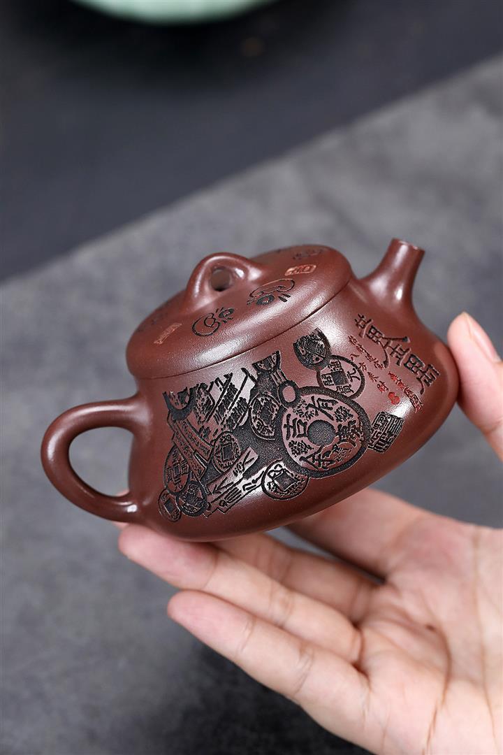 150cc原礦紫泥手工刻繪八方來財茶壺POT8465