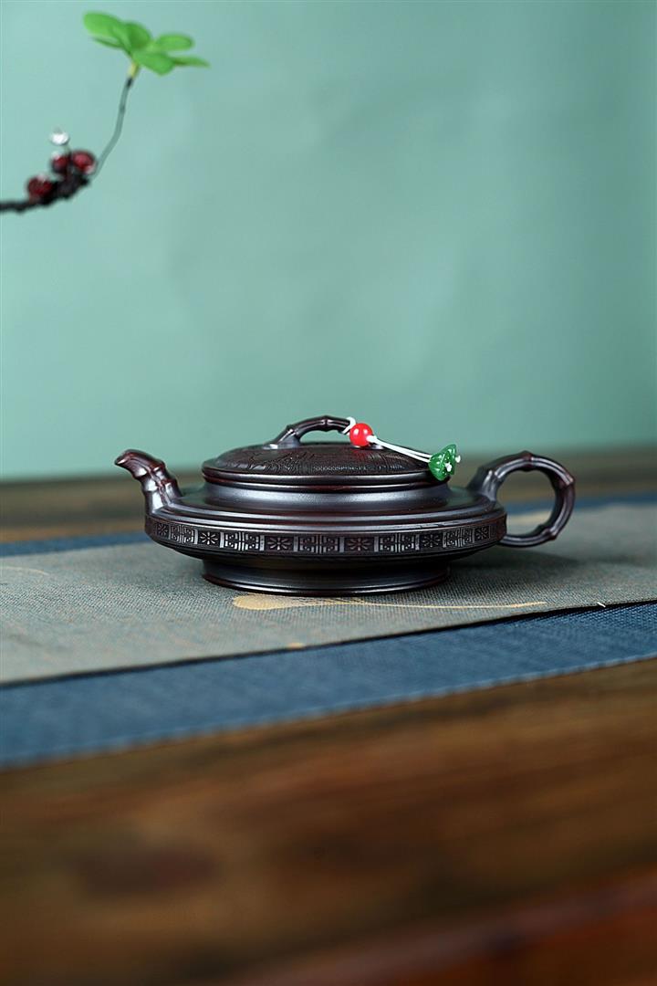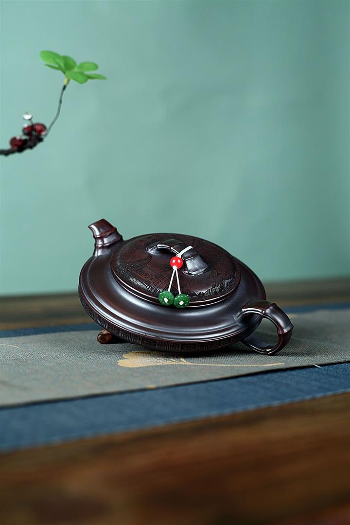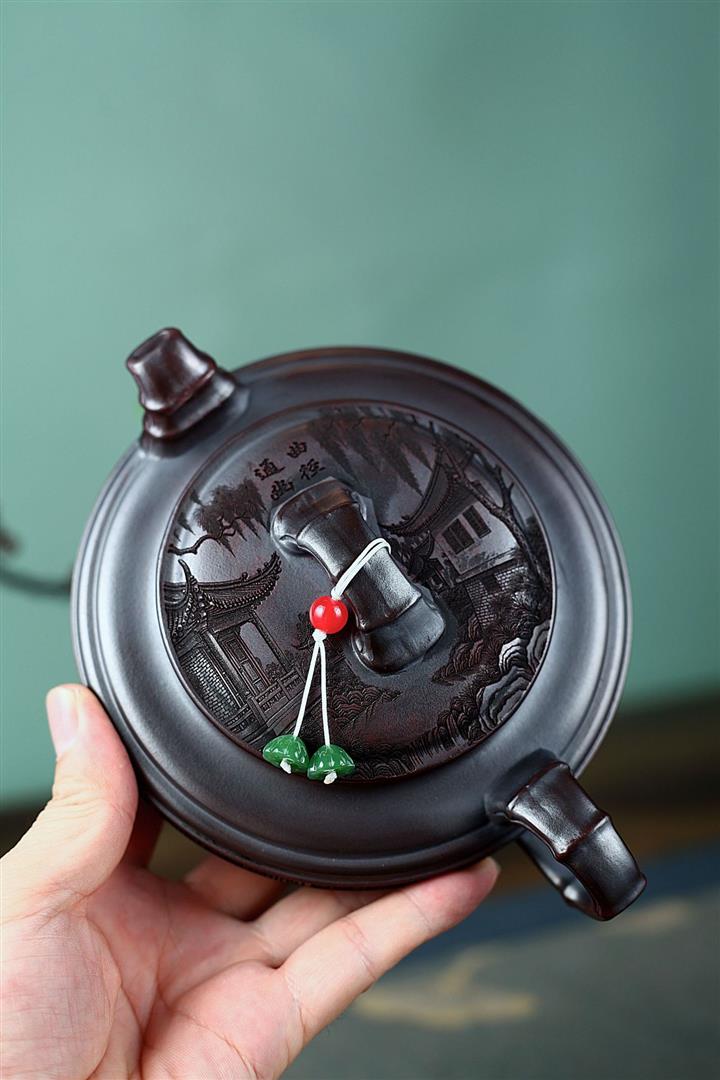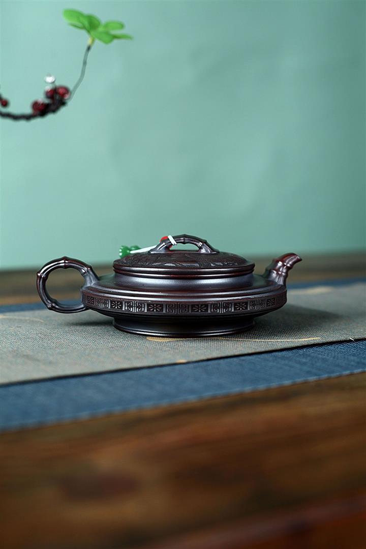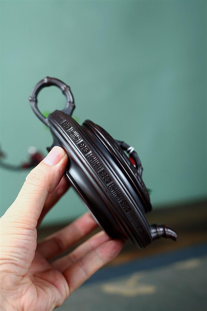 530cc原礦石紅泥春色滿園竹段茶壺POT8645
