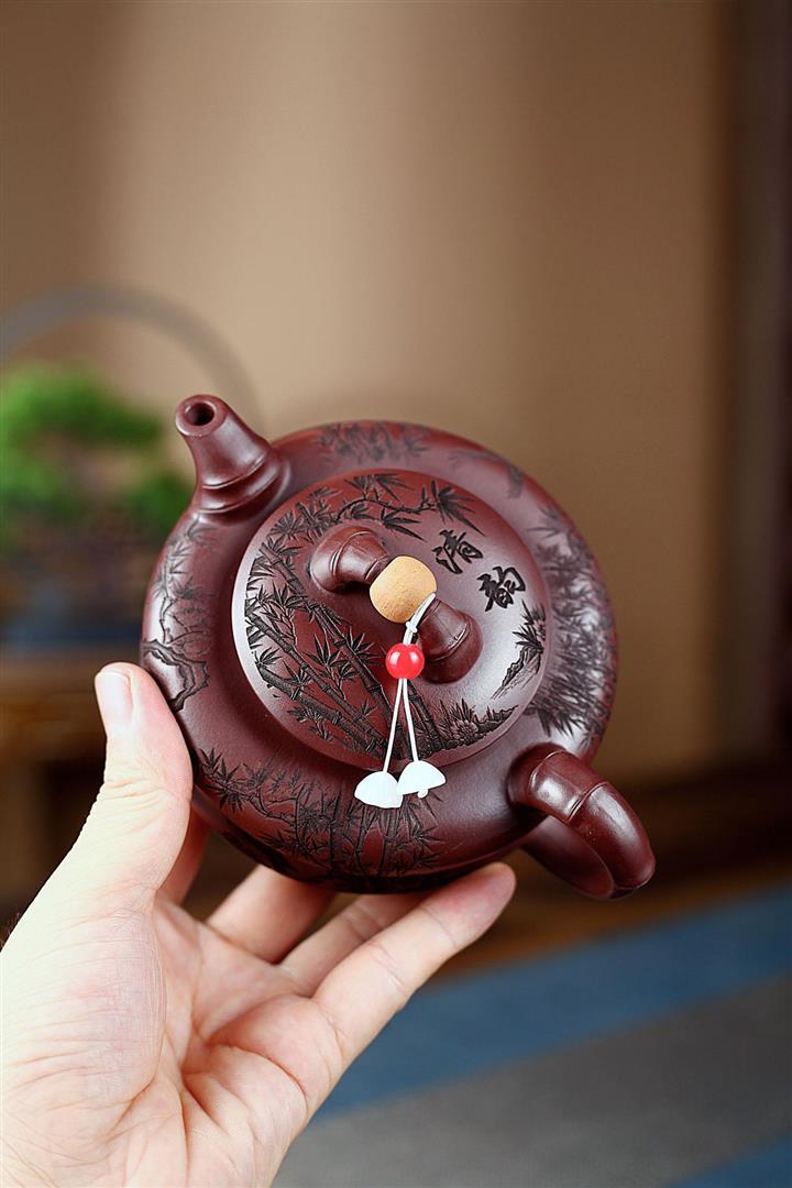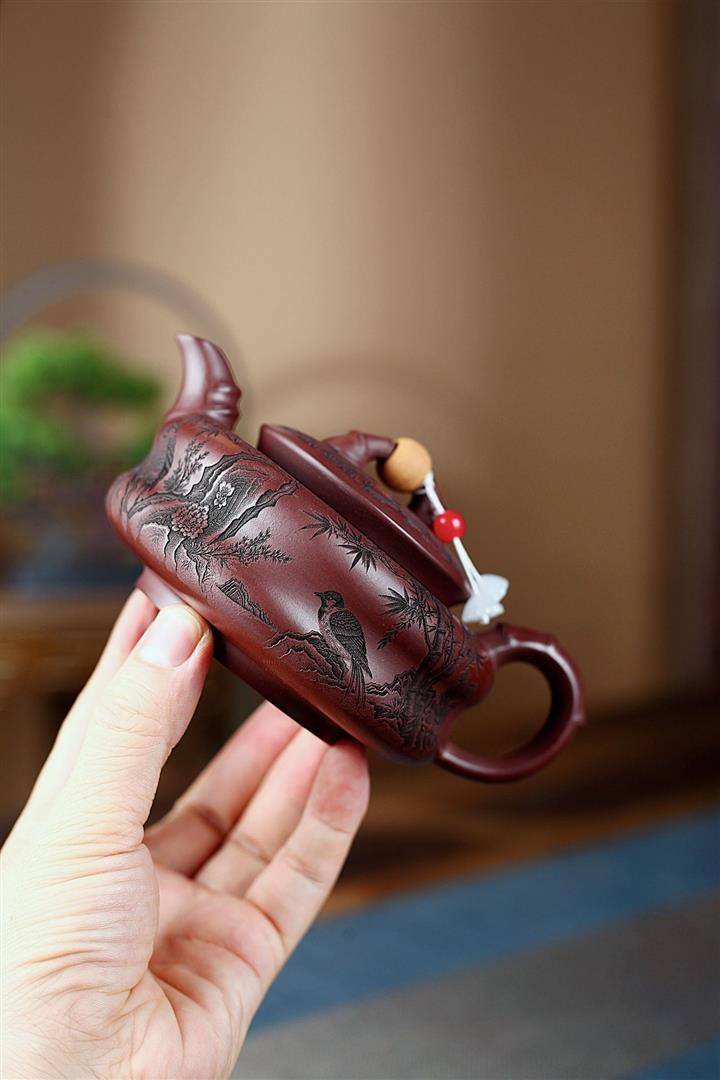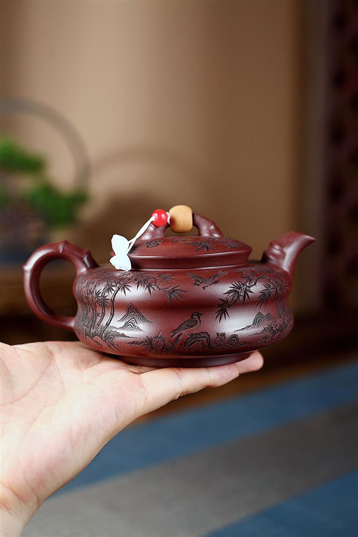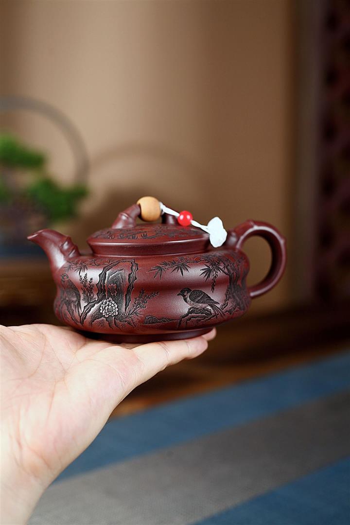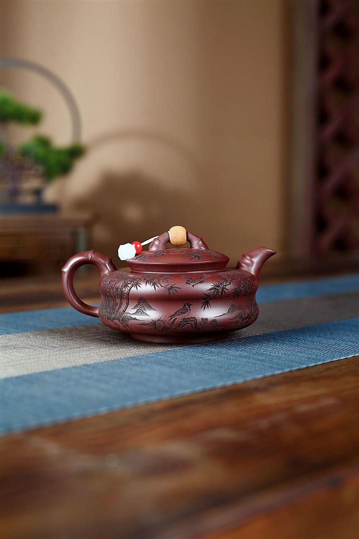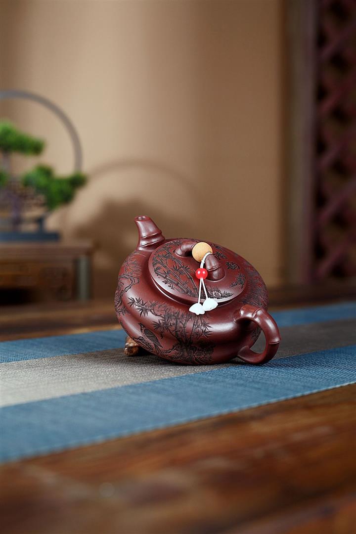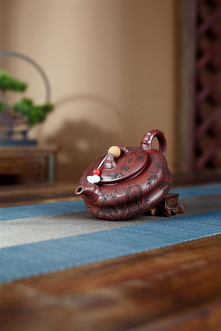 原礦龍血砂手工滿刻蒼松茶壺POT7143