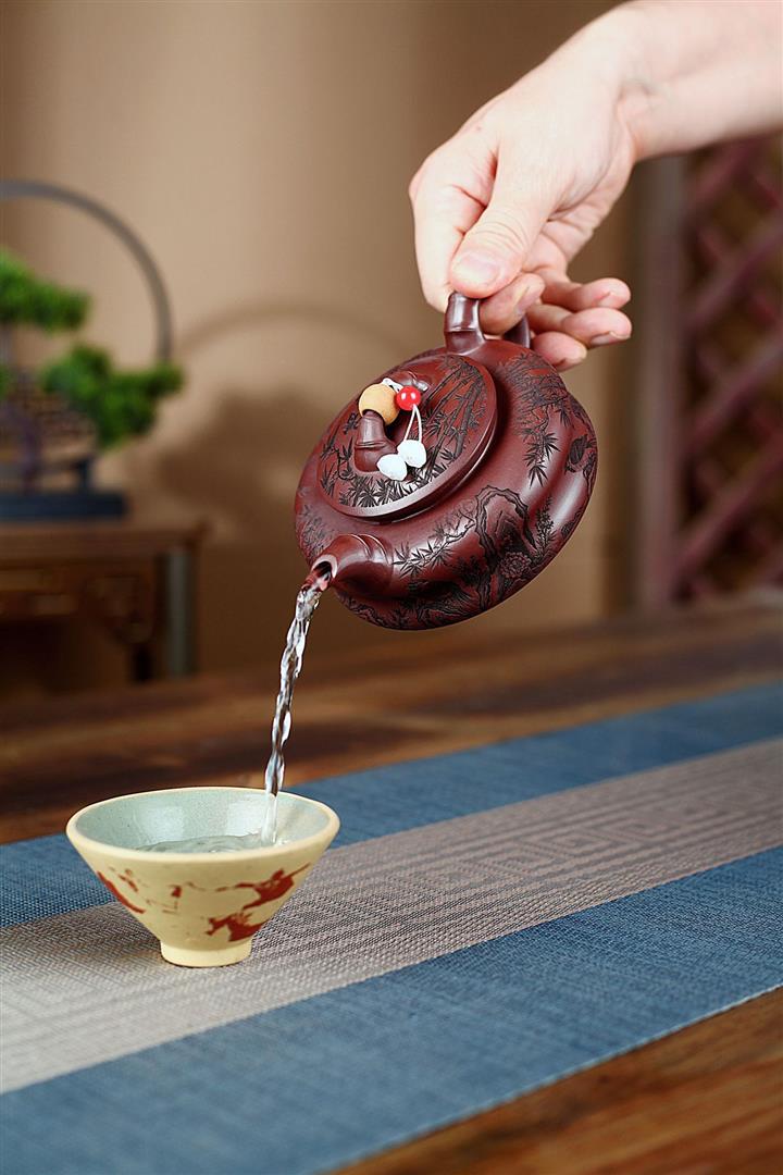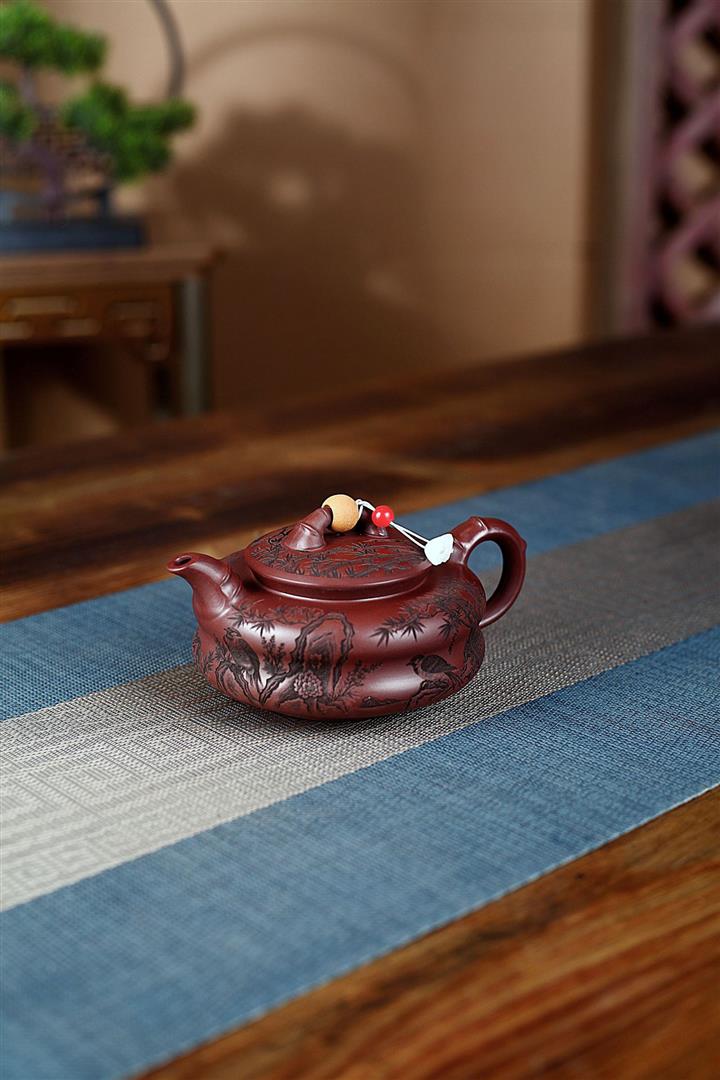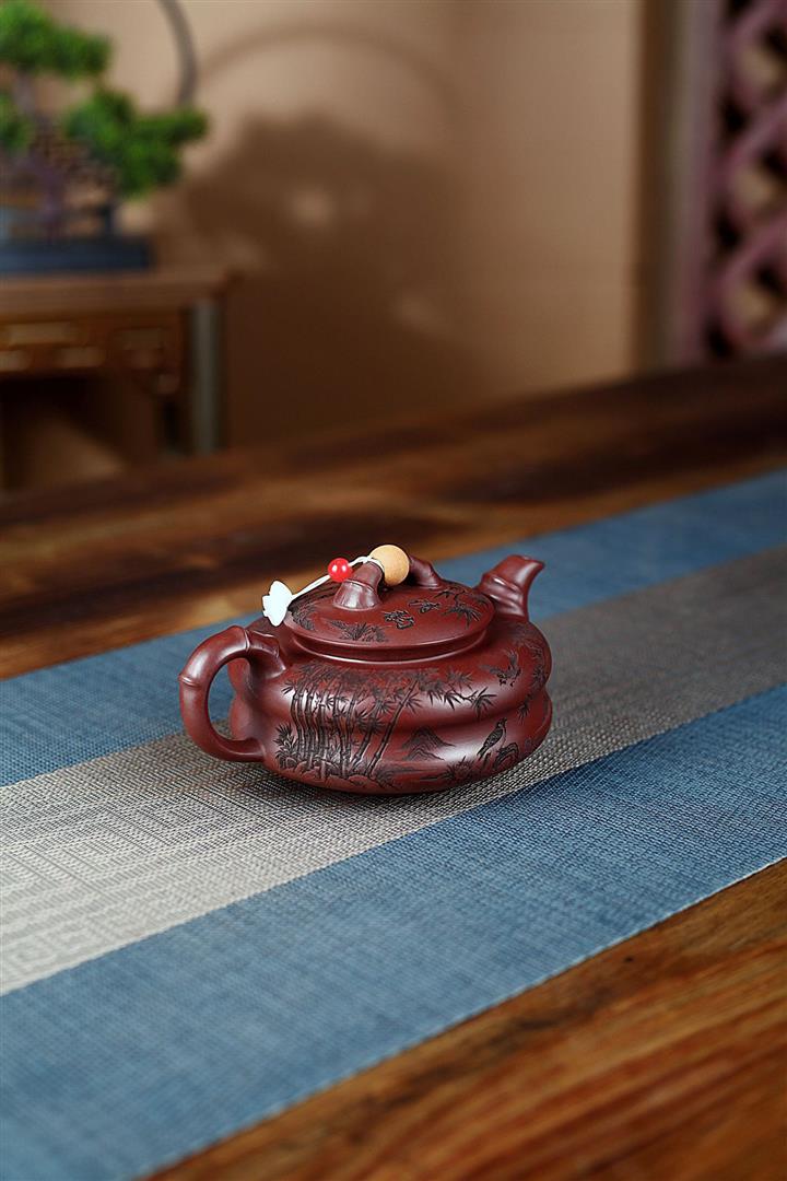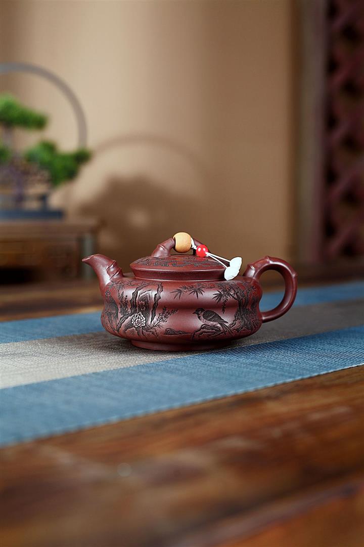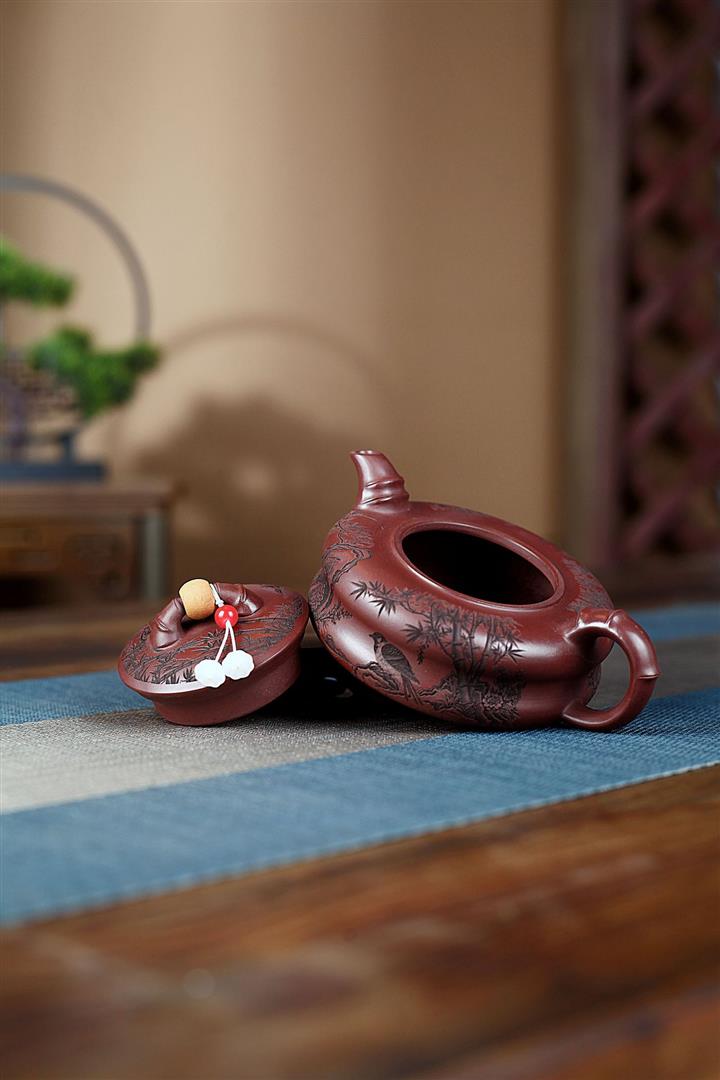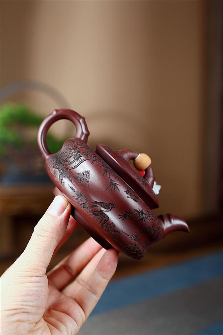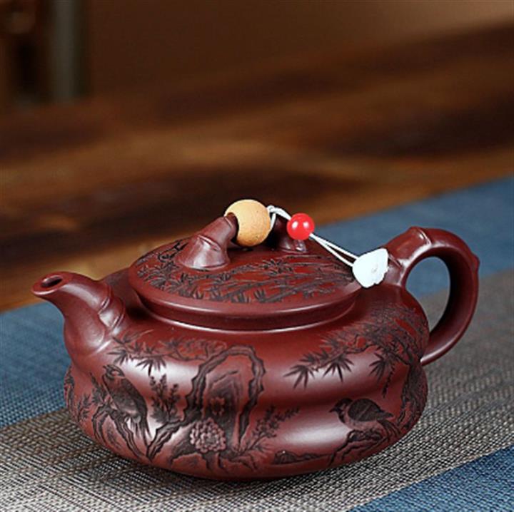 原礦龍血砂手工滿刻蒼松茶壺POT7143