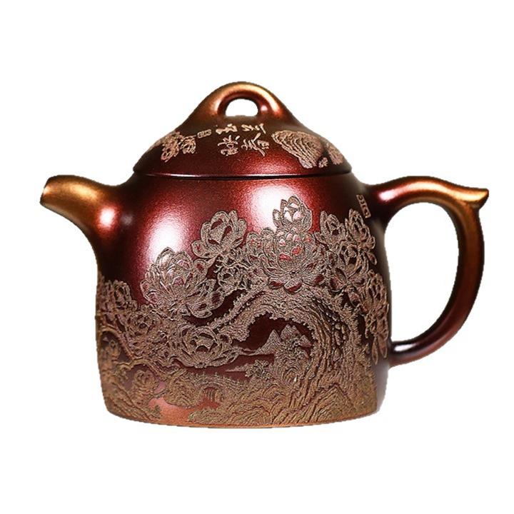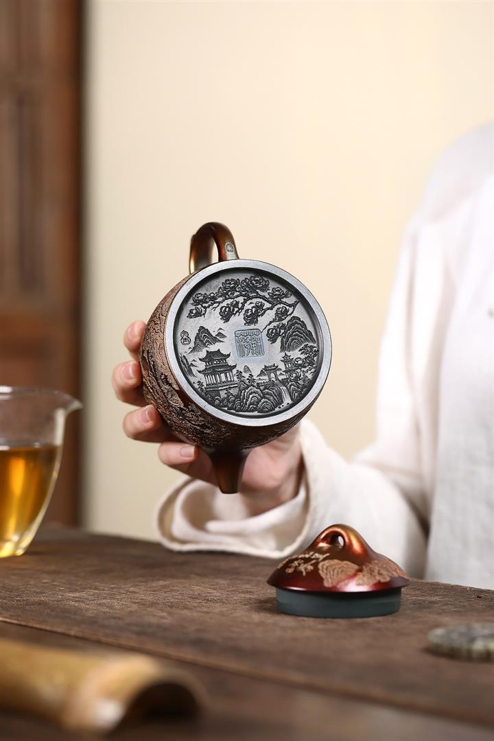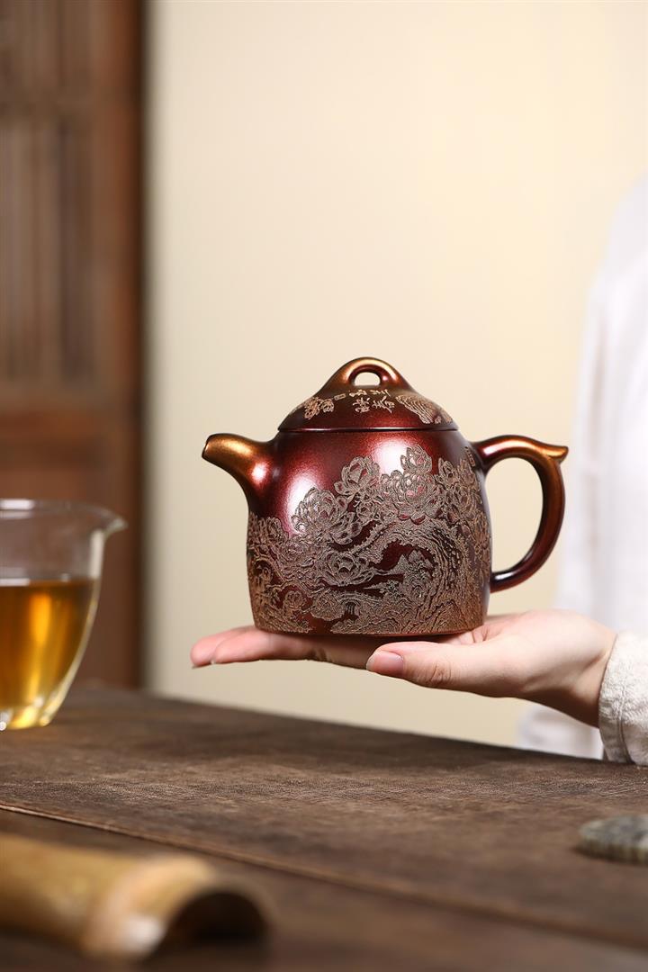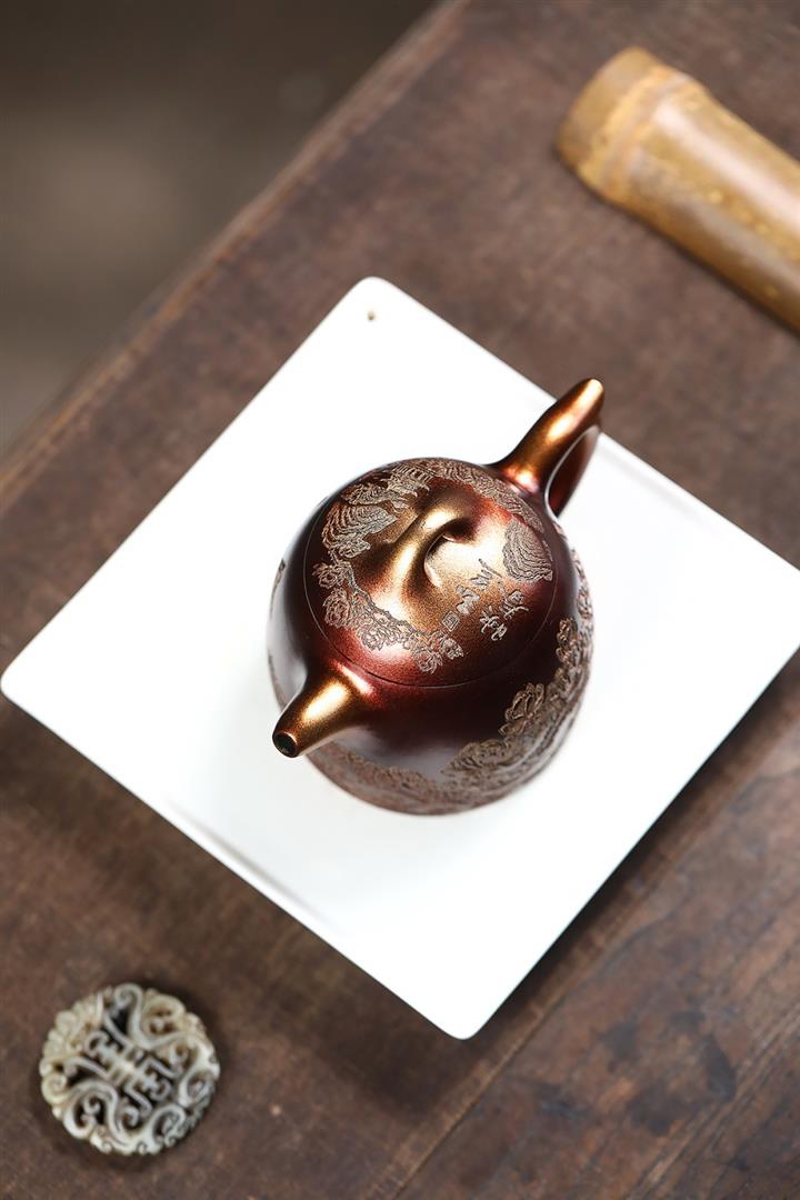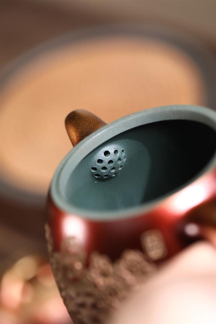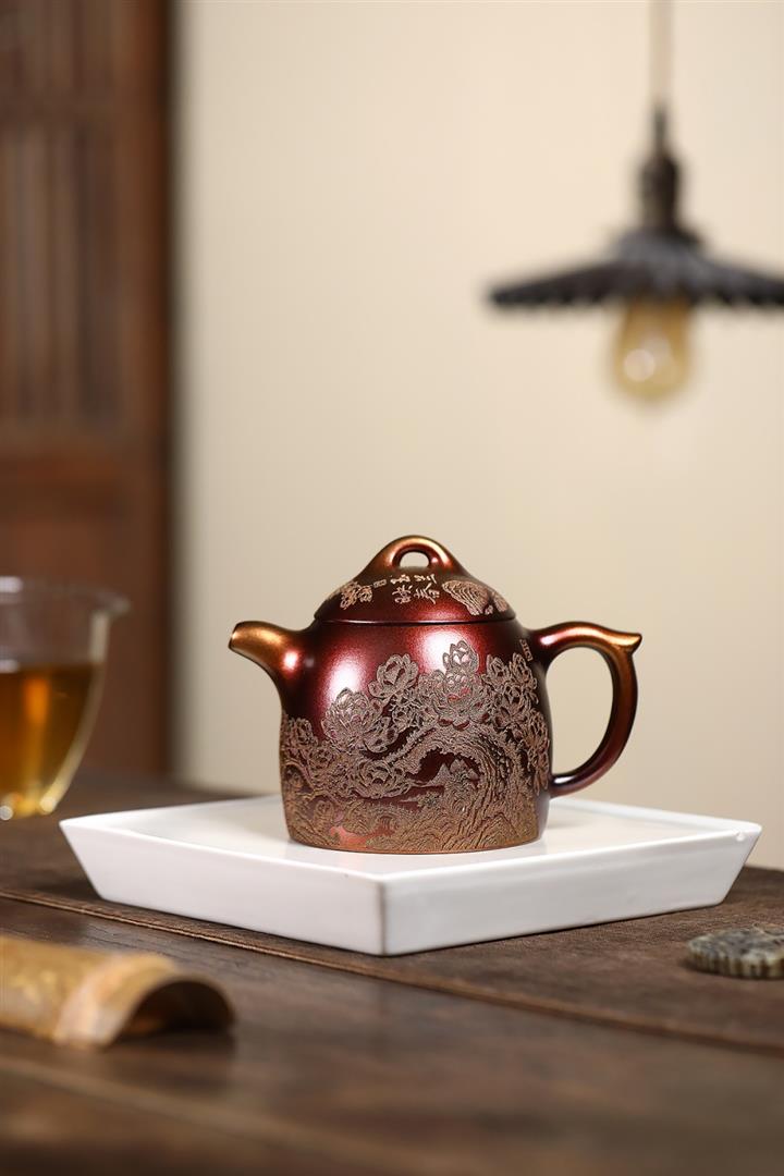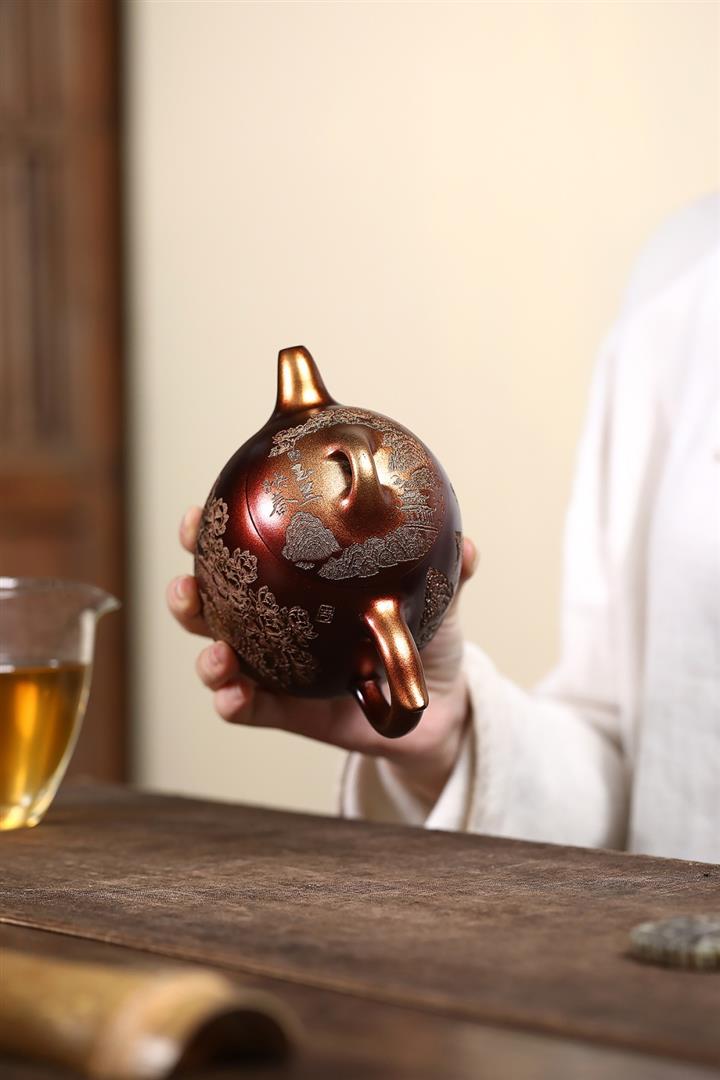 400cc原礦綠泥貝克燒金砂桃源秦權茶壺POT8474